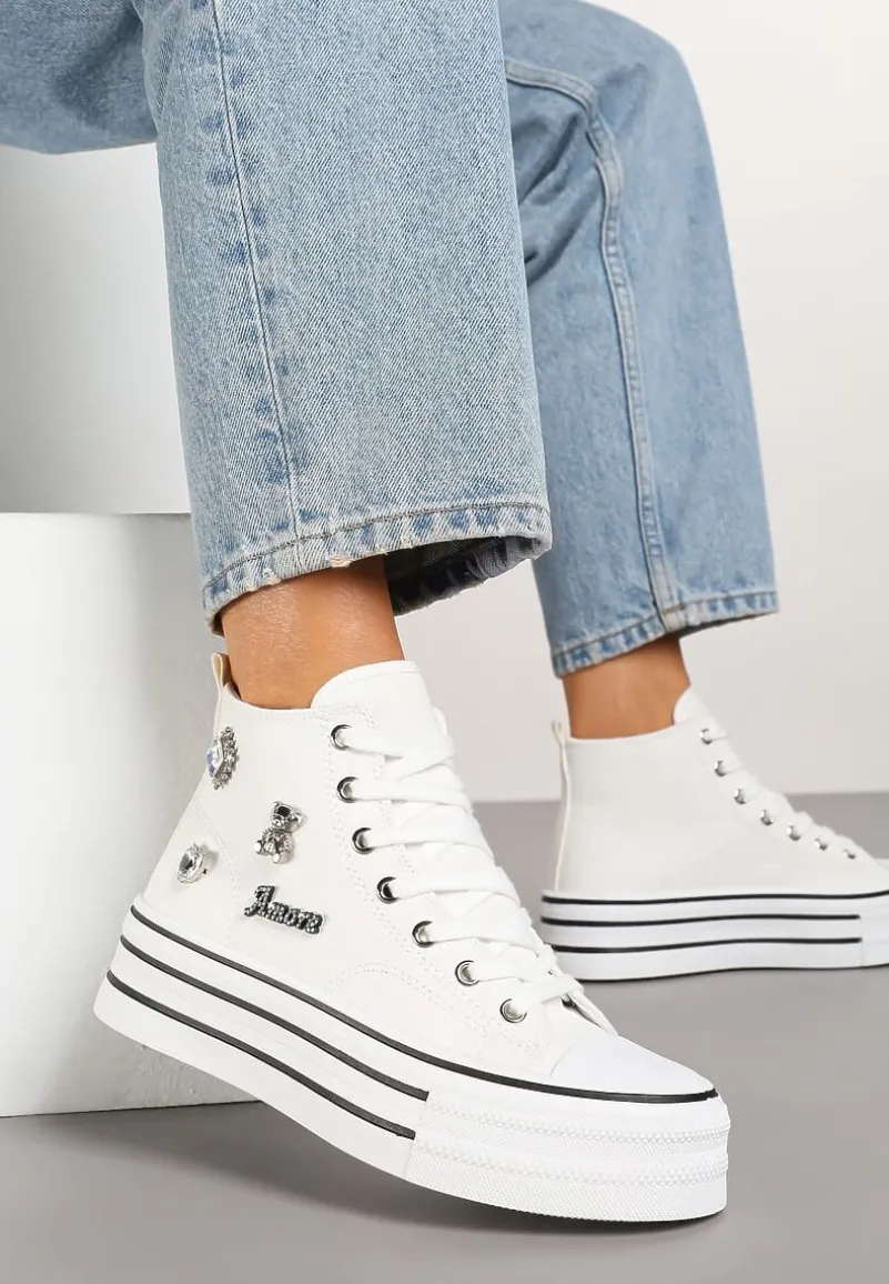 Trampki na platformie Jalzedis to kwintesencja miejskiego szyku. Kultowy fason z wysoką platformą dodaje pewności siebie, a metaliczne aplikacje przyciągają spojrzenia, podkreślając oryginalny styl. Idealne na co dzień do luźnych jeansów i oversize’owego swetra lub na wieczorne wyjście z elegancką sukienką i skórzaną kurtką. Te buty z okrągłym noskiem i praktycznym sznurowaniem wpisują się w najnowsze trendy i są doskonałym wyborem dla fashionistki, która nie boi się wyróżniać.