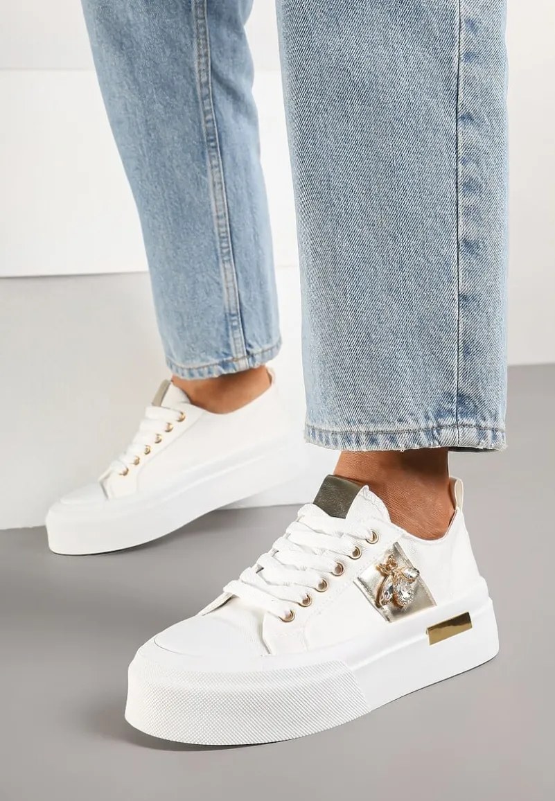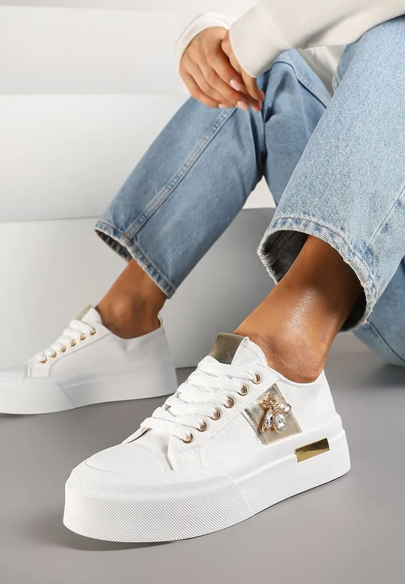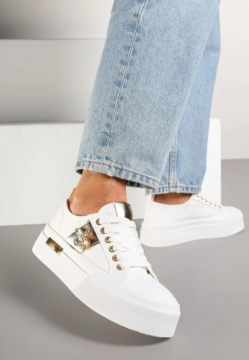 Trampki Gonessa na platformie z biżuteryjną aplikacją to must-have dla każdej modowej entuzjastki, która ceni sobie wyraziste detale. Te wyjątkowe buty o zaokrąglonym nosku są zapinane na klasyczne sznurowadła, co dodaje im niebanalnego stylu. Idealnie wpisują się w najnowsze trendy, łącząc casualowy wdzięk z nutą elegancji dzięki gustownym zdobieniom. Stylizowane z jeansami i klasycznym T-shirtem dodadzą miejskiego luzu, a zestawione z prostą sukienką i błyszczącą torebką sprawdzą się na wieczornych spotkaniach. Musisz je mieć!