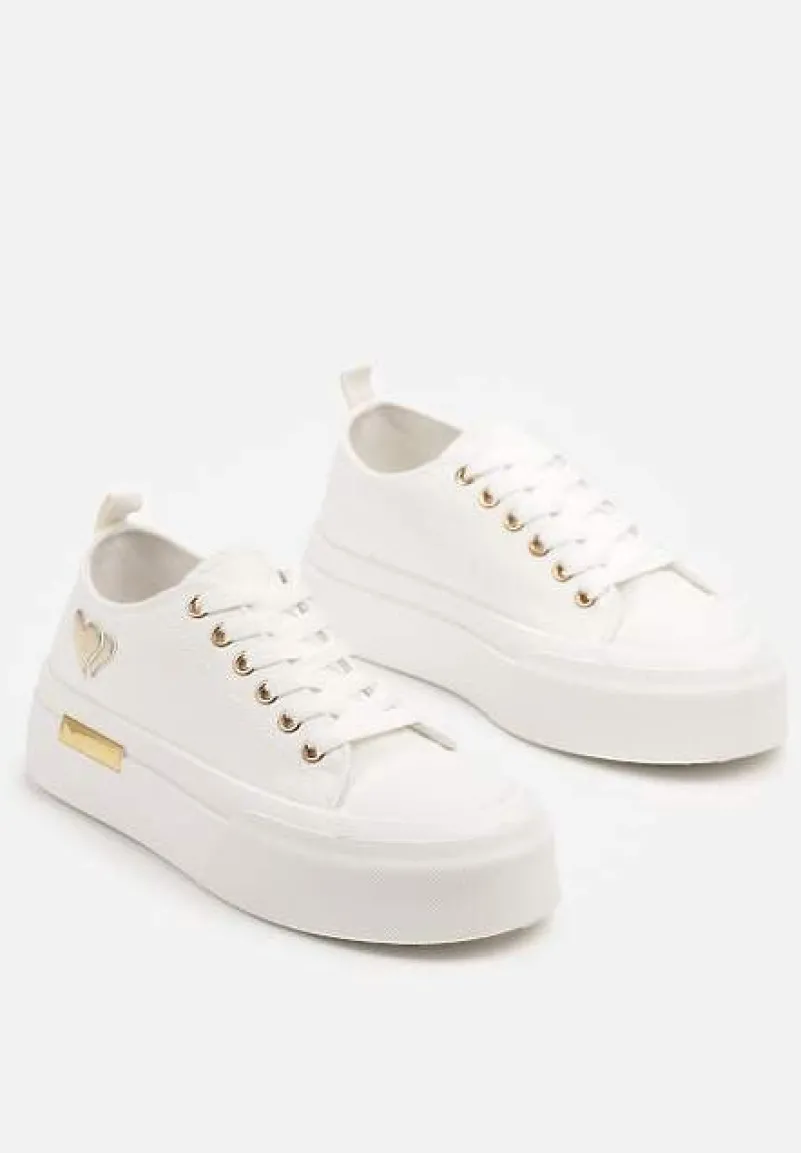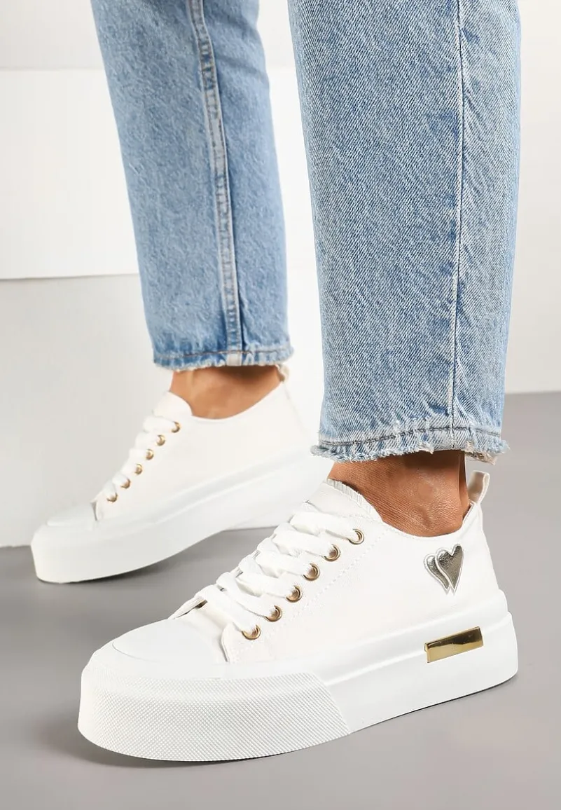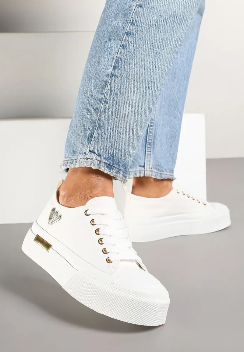 Trampki na Platformie z Metalicznymi Sercami Florvila to must-have dla każdej miłośniczki modnych detali. Platformowa podeszwa dodaje wysokości i podkreśla sylwetkę, a metaliczne serca przyciągają spojrzenia i dodają uroku każdej stylizacji. Idealnie komponują się z casualowym lookiem — załóż je do ulubionych jeansów i luźnej koszulki na spotkanie z przyjaciółmi.