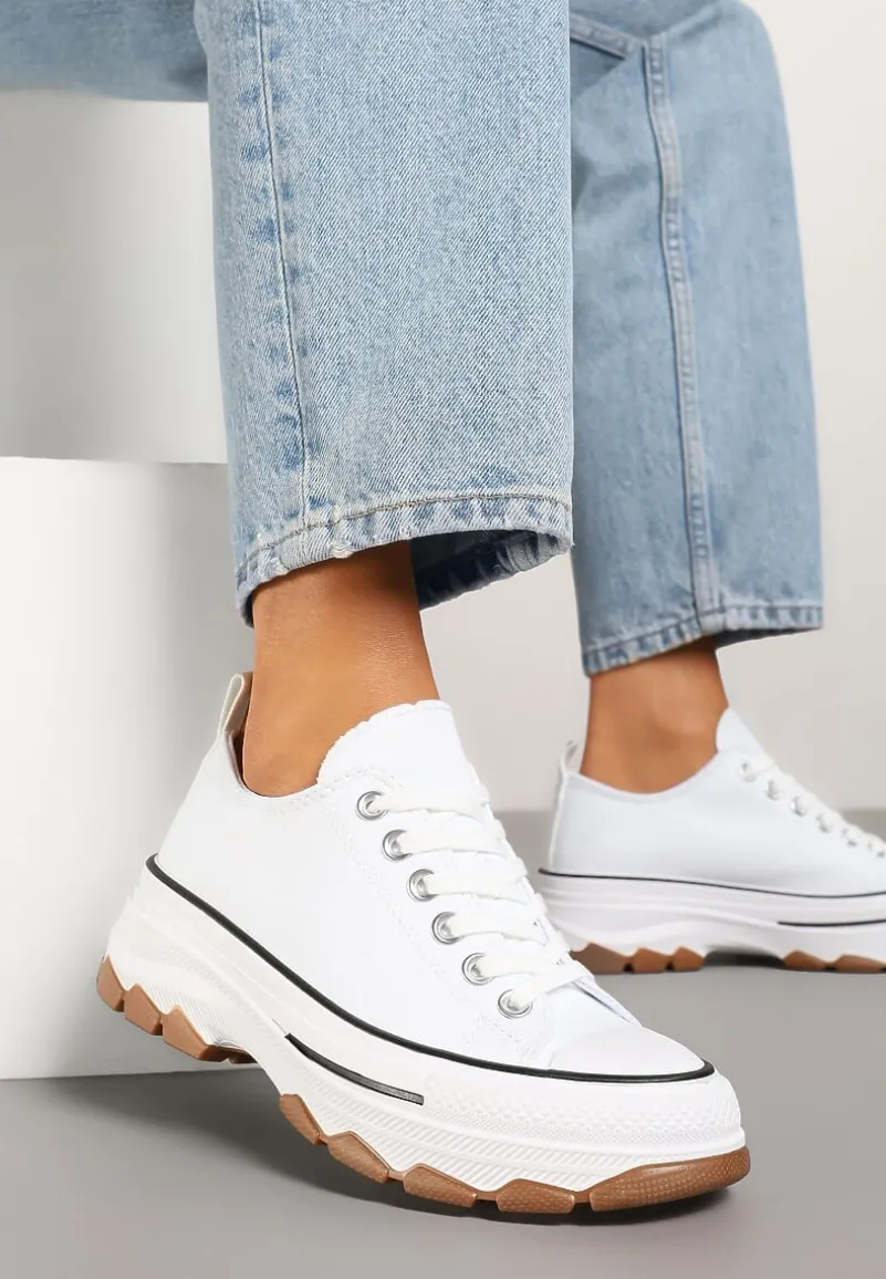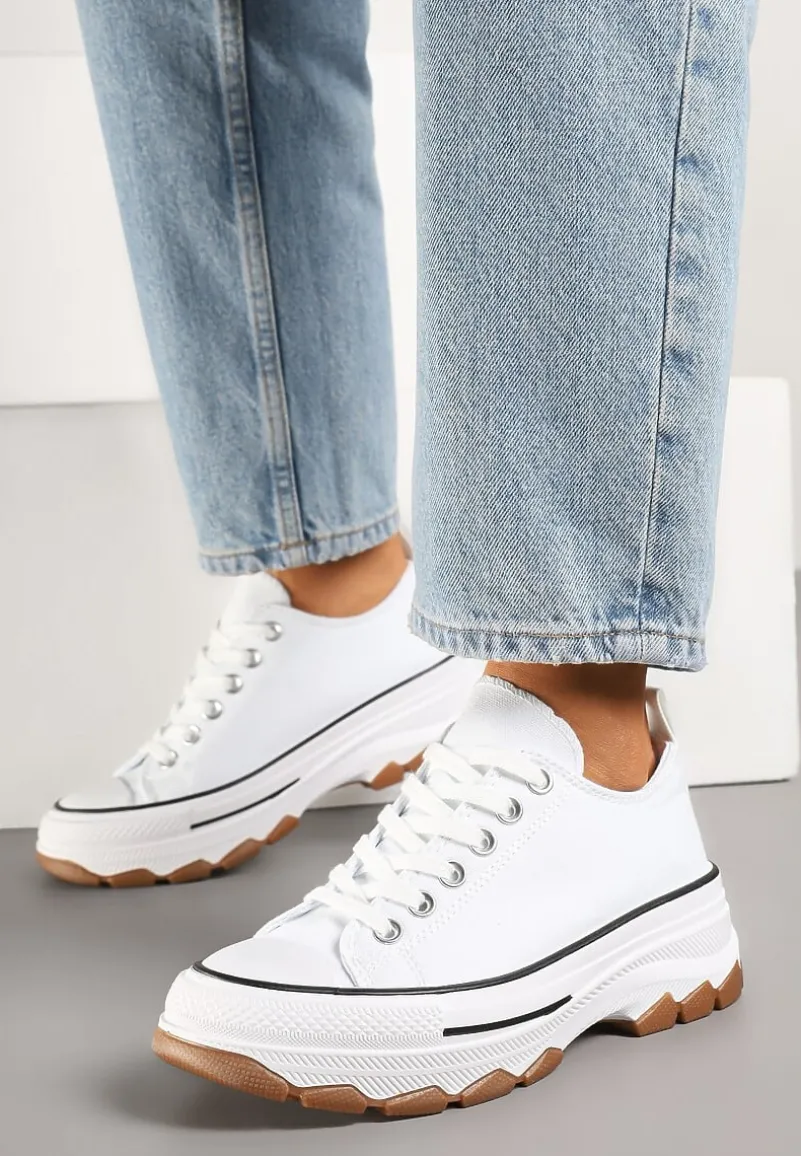 Trampki na Platformie z Niską Cholewką Evalloria to must-have dla każdej fashionistki! Te stylowe buty charakteryzują się modną platformą, która dodaje wysokości. Sznurówki sprawiają, że są idealne do szybkiego zakupu na co dzień, a ich minimalistyczny design sprawdzi się w casualowych stylizacjach.Pomyśl o zestawieniu Evallorii z letnią sukienką w kwiaty i jeansową kurtką na chłodne wieczory – będziesz wyglądać zjawiskowo! Zainwestuj w Evallorię i wyraź swój styl!