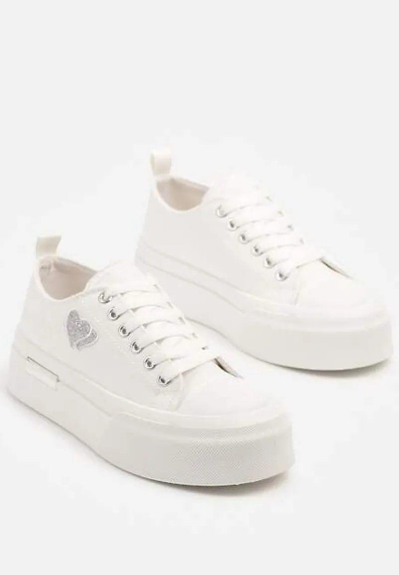 Trampki na platformie Laviere to idealny wybór dla miłośniczek mody, które chcą wyrazić swoją osobowość. Ich nowoczesny styl przyciąga wzrok dzięki ozdobnemu napisowi i sercu, a okrągły nosek zapewnia casualowy look. Buty są sznurowane, co dodaje im sportowego charakteru, a platforma unosi sylwetkę, dodając ci odrobiny pewności siebie. Stylizuj je z jeansami i oversize’ową bluzą na co dzień lub zestaw z mini spódniczką i ciemnym topem na wieczorne wyjście.