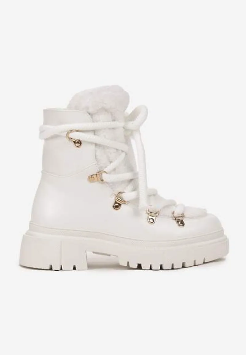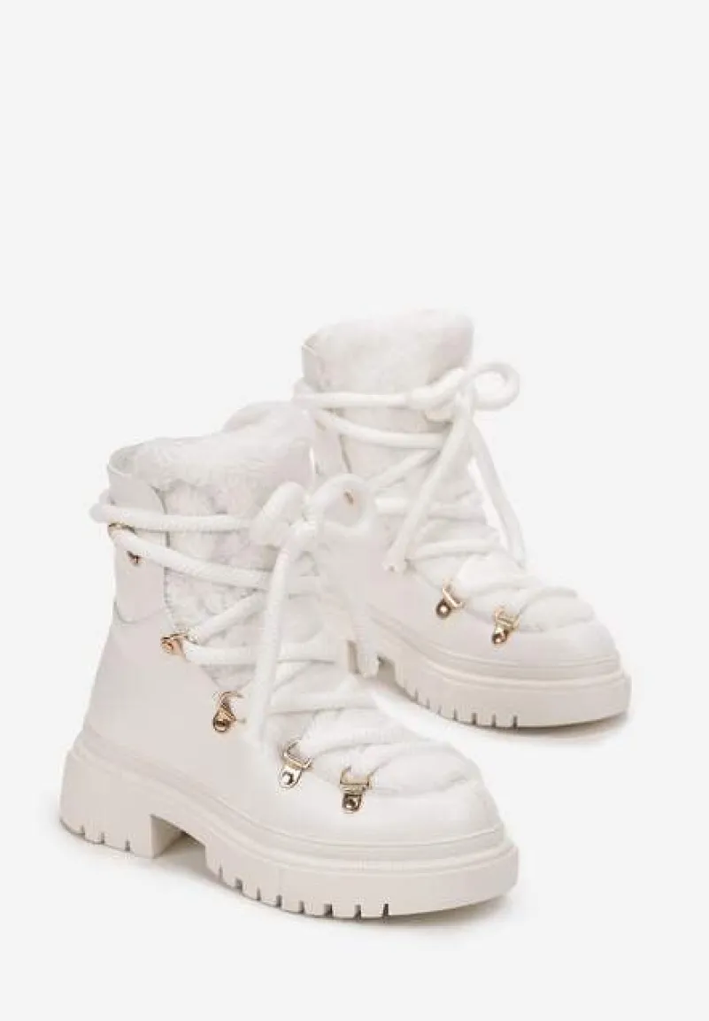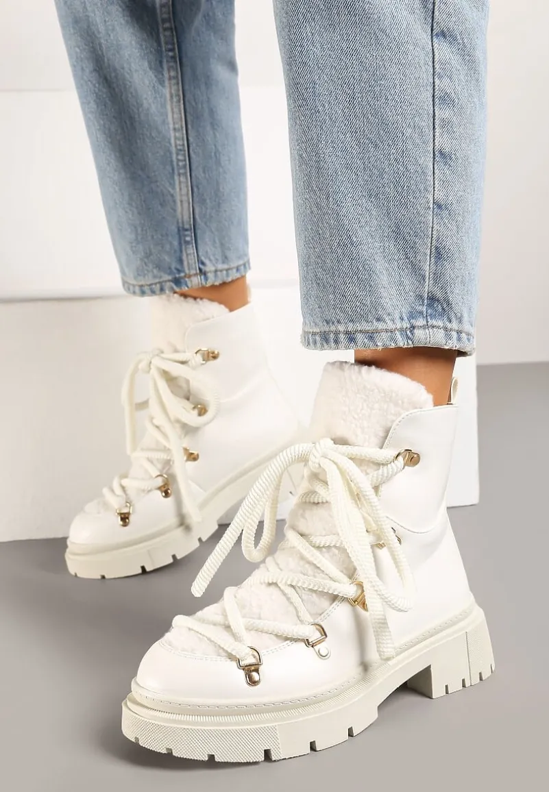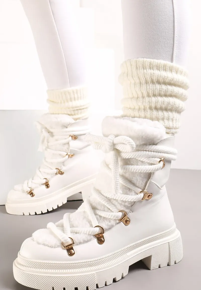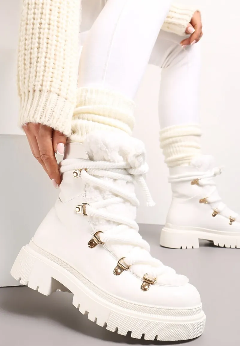 Traperki Wiązane na Sznurek Ozdobione Kożuszkiem Sidonnie to must-have tego sezonu! Buty zaskakują grą faktur i oryginalnymi detalami, które nadadzą charakteru zarówno codziennym, jak i bardziej wyrazistym outfitom. Gruba podeszwa kontrastuje z delikatnym kożuszkiem przy języku, tworząc efektowny duet. Sznurówki pozwalają na idealne dopasowanie. Stwórz połączenie z jeansami i oversize’owym swetrem dla luźnego looku albo dodaj czarną, skórzaną ramoneskę dla edgy twistu na wieczorne wyjścia. Botki Sidonnie to niezastąpiony wybór na każdą okazję!