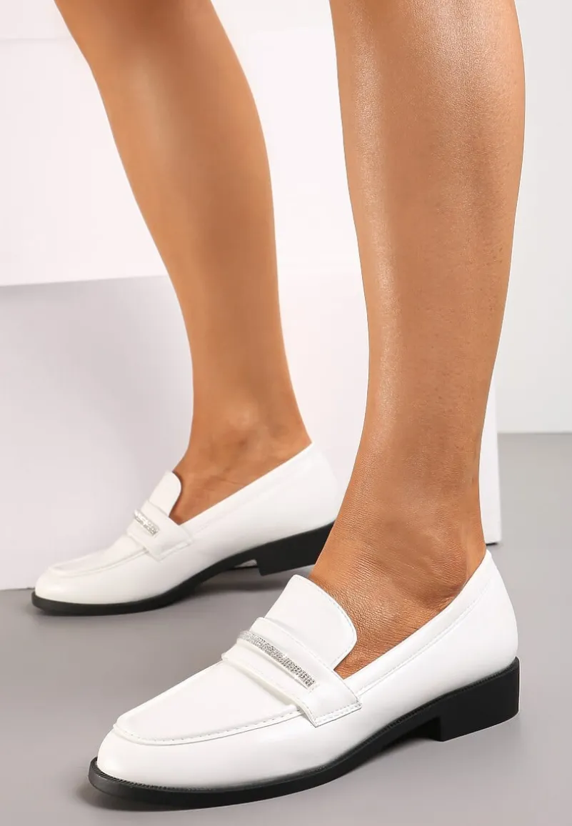 Wsuwane mokasyny Croiss wykonane z imitacji skóry. Zdobione paskiem wysadzanym cyrkoniami. Zachwycą każdą minimalistkę!
