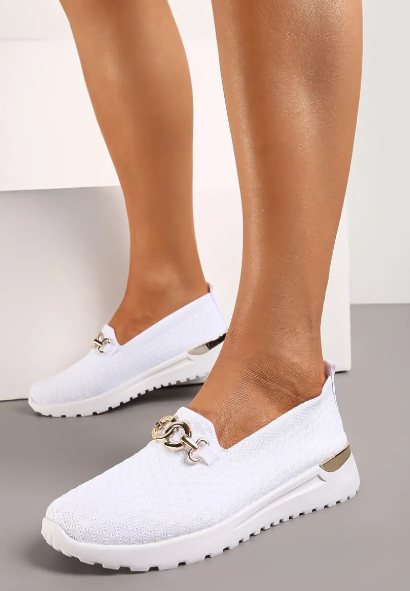 Te wsuwane, płaskie półbuty w stylu tenisówek to prawdziwa gratka dla każdej fanki miejskiego szyku! Będą Twoimi ulubionymi zarówno na co dzień, jak i podczas weekendowych eskapad. Przyciągają spojrzenia zaokrąglonym noskiem i modnym designem. Złota klamra dodaje im szyku i pozwala urozmaicić nawet najprostsze stylizacje – wyobraź sobie je jako zwieńczenie casualowego looku z jeansami i koszulą lub jako lekki akcent do romantycznej sukienki na wieczorne wyjście. Przyciągaj spojrzenia, błyszcz każdego dnia.