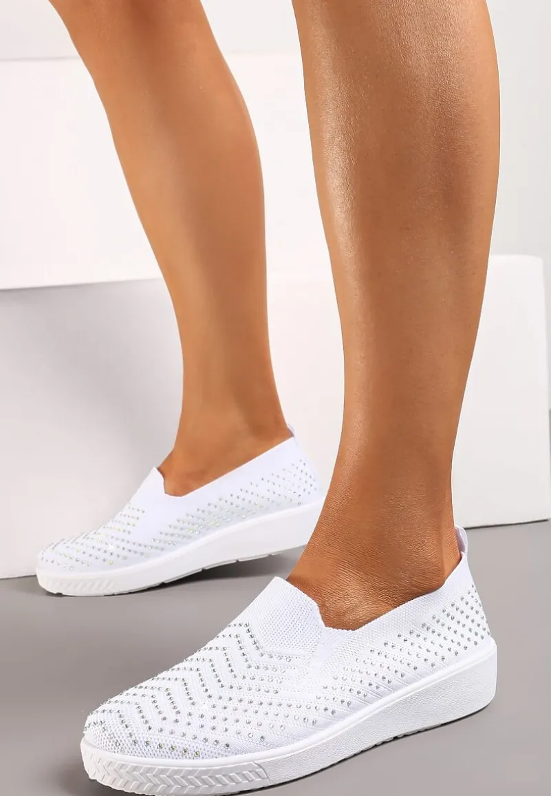 Odkryj wsuwane tenisówki, które łączą sportowy styl z eleganckim blaskiem. Ich wygodna płaska podeszwa i miękka wyściółka dopasują się do stopy. Okrągły nosek buta gwarantuje swobodę, a brak zapięć to wygoda w każdej sytuacji. Idealne na wiosenno-letnie dni, wpisują się w casualowy look z jeansami i T-shirtem lub dodają nieszablonowego akcentu do bardziej formalnego zestawu z cygaretkami i bluzką z kołnierzykiem. Cyrkonie dodają im niebanalnego charakteru i sprawiają, że nie przejdziesz niezauważona.