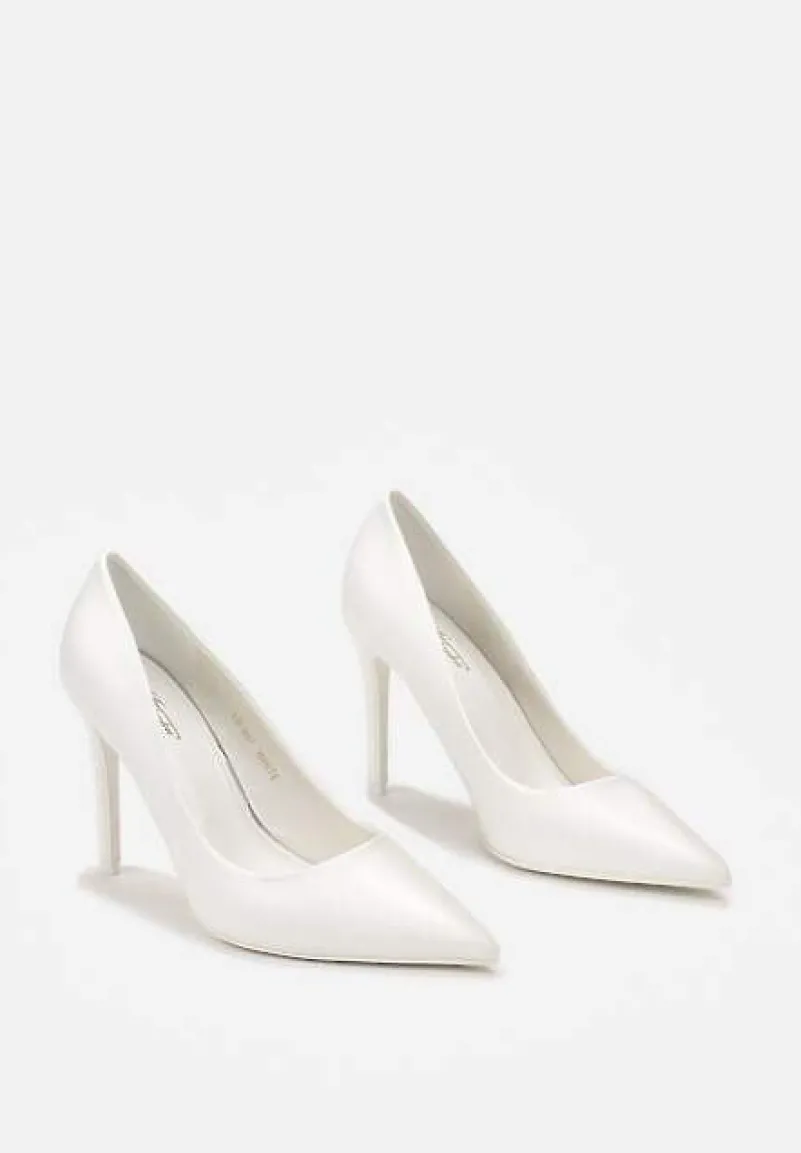 Białe Wysokie Szpilki z Gładkiej Imitacji Skóry Venitorre