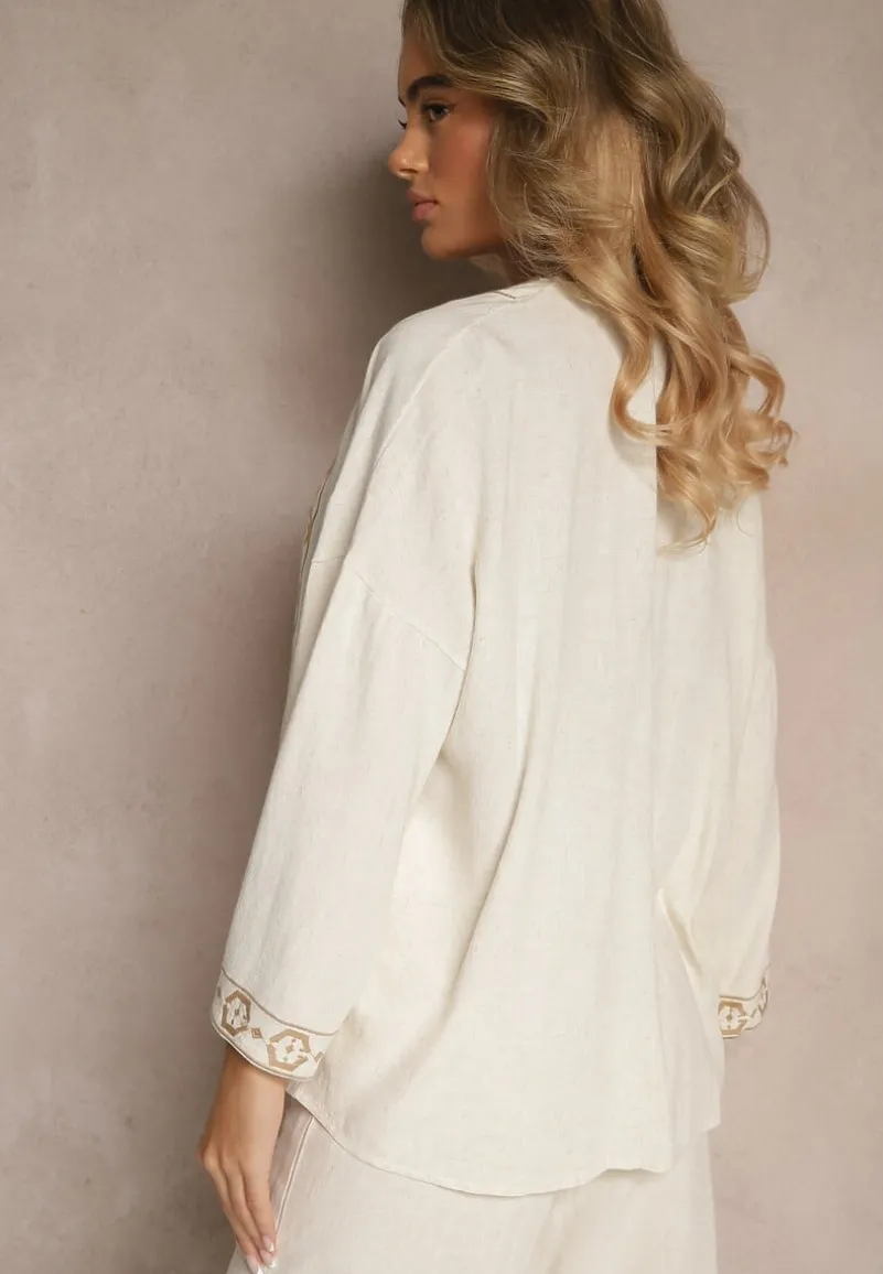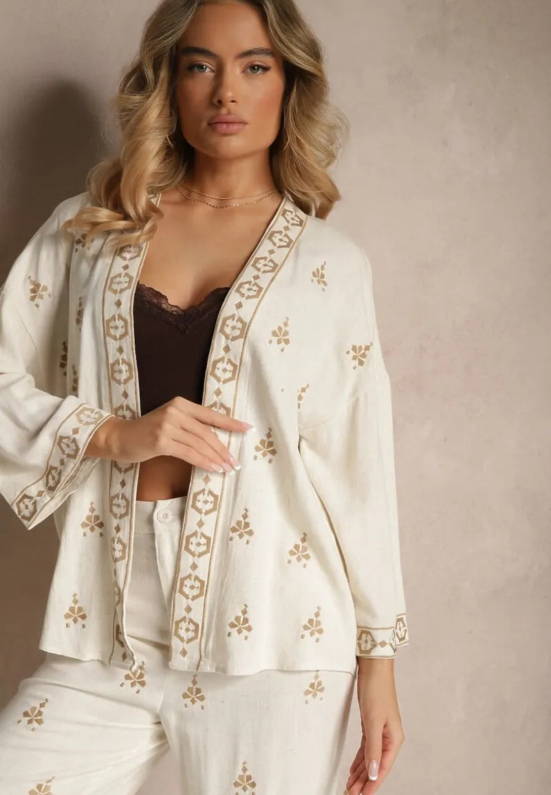Bluzka Narzutka Caliven z lnem i wiskozą to niezastąpiony element garderoby dla każdej modnej kobiety, która ceni sobie styl. Ozdobny haft przyciąga uwagę i nadaje bluzce wyjątkowego charakteru, idealnego zarówno na casualowe spotkania z przyjaciółmi, jak i na bardziej formalne okazje.