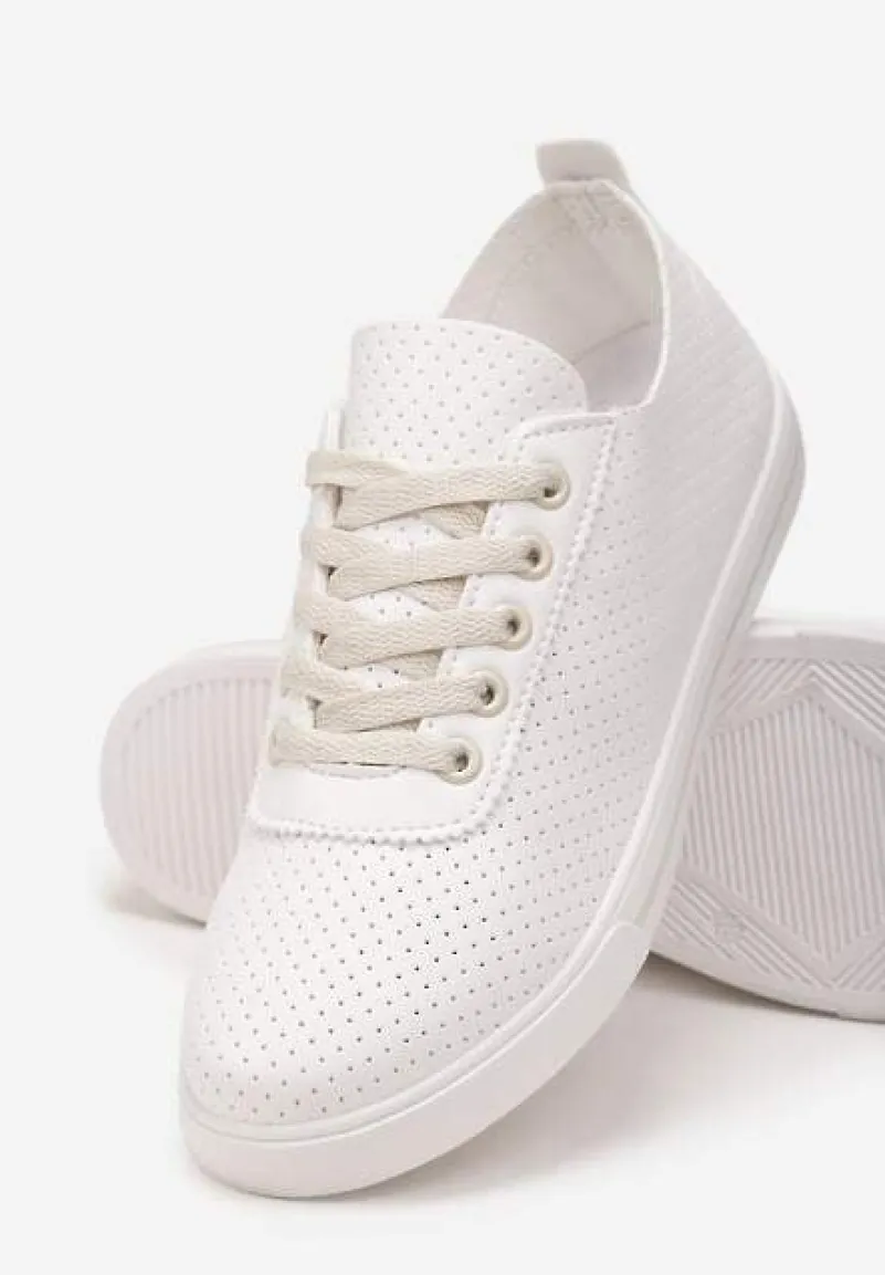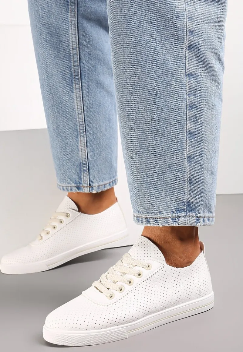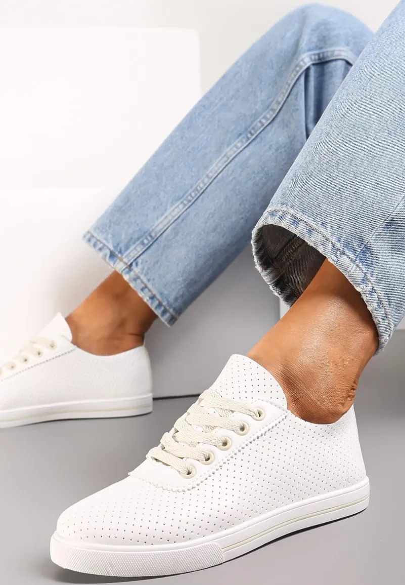 Tenisówki Mirnala na płaskiej podeszwie z dziurkami i ozdobną taśmą to kluczowy element damskiej garderoby na sportowe i casualowe stylizacje.