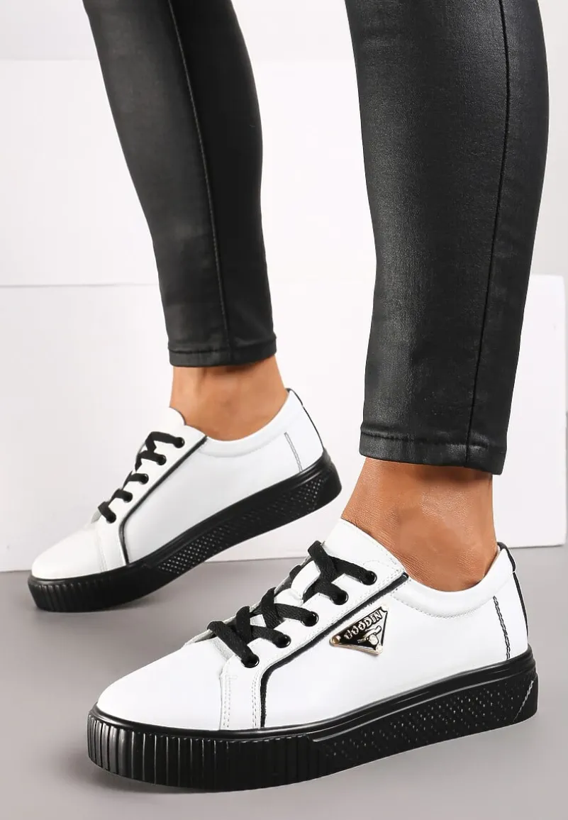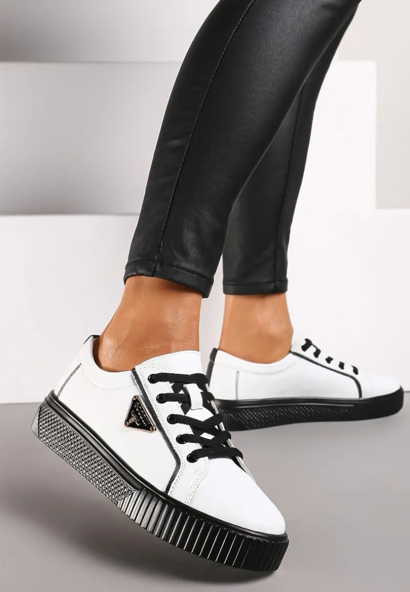 Sneakersy na Płaskiej Podeszwie ze Skóry z Metaliczną Ozdobą Melabra to kwintesencja casualowego szyku dla kobiety ceniącej styl. Ich płaska podeszwa gwarantuje stabilność. Zostały wykonane z naturalnej skóry, co zapewnia elegancki wygląd. Metaliczna ozdoba nadaje im nieco charakteru, dzięki czemu świetnie komponują się zarówno z miejskimi szortami i t-shirtem, jak i z bardziej wyrafinowaną koszulą i cygaretkami na wieczorne wyjście. Sneakersy Melabra to must-have w szafie każdej trendsetterki!