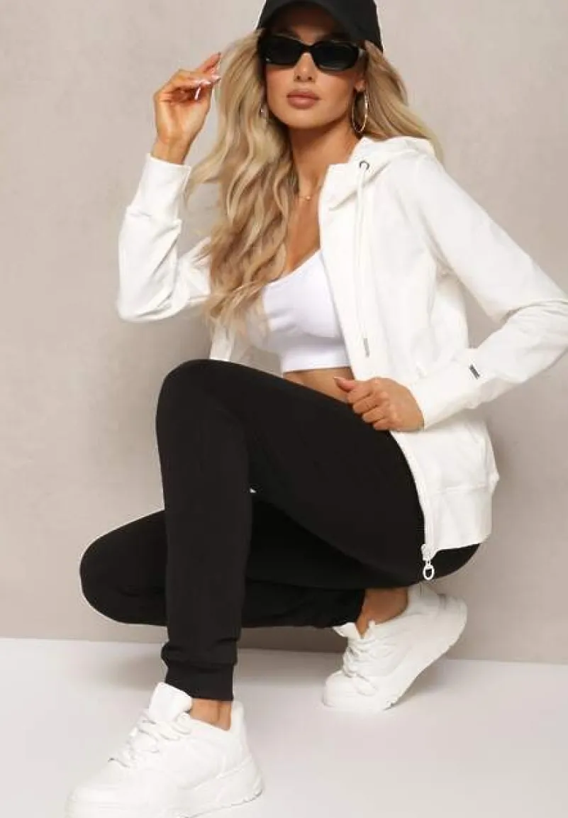 Komplet Dresowy Junine o klasycznym fasonie z zasuwaną bluzą z kapturem i spodniami z gumką w pasie. Idealny na spacer, trening czy do sportowych stylizacji na co dzień.