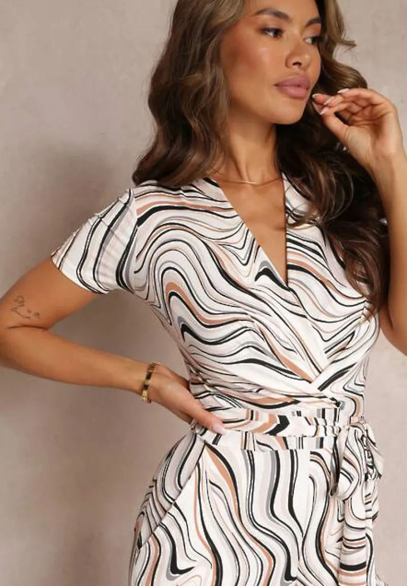 Biało-Czarny Kopertowy Kombinezon z Krótkimi Rękawami i Długimi Nogawkami Zoeni