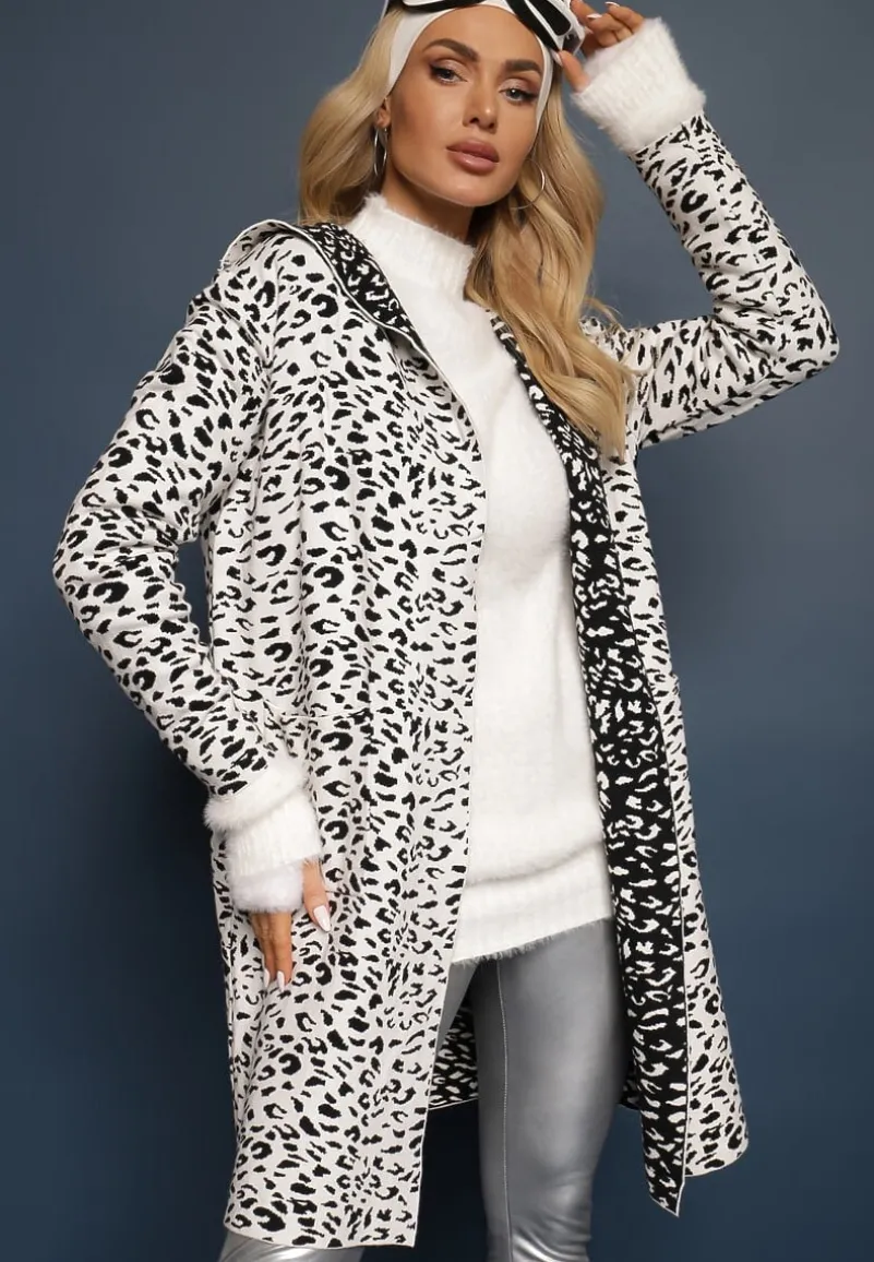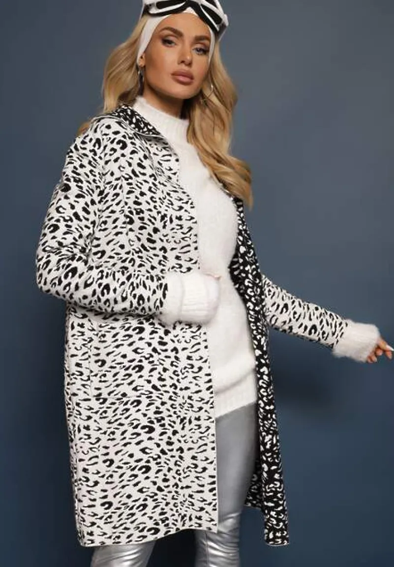 Kardigan Riaverna to must-have w garderobie każdej fashionistki, która ceni sobie unikatowy design i uniwersalność. Niezapinany fason z wygodnymi kieszeniami prezentuje się wyjątkowo stylowo, dzięki trendowemu panterkowemu printowi. Ten kardigan świetnie sprawdzi się jako dopełnienie casualowego looku na co dzień – wypróbuj go z basicowym topem, rurkami i botkami, a także jako stylowy akcent do wieczorowej sukienki, nadający outfitowi charakteru. Jego luźny krój daje swobodę ruchów i pasuje do różnorodnych sylwetek. Wyraź siebie modą z Riaverna!