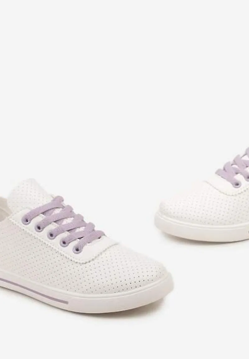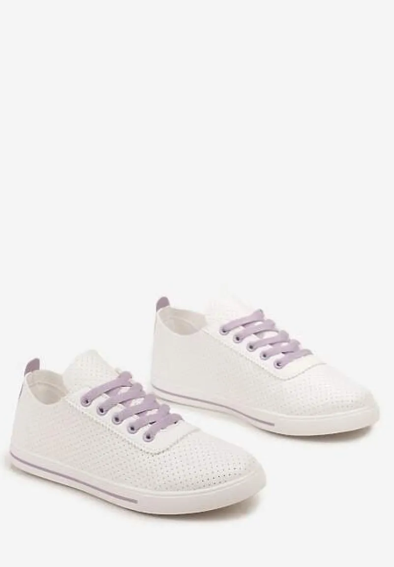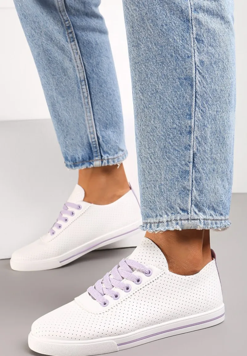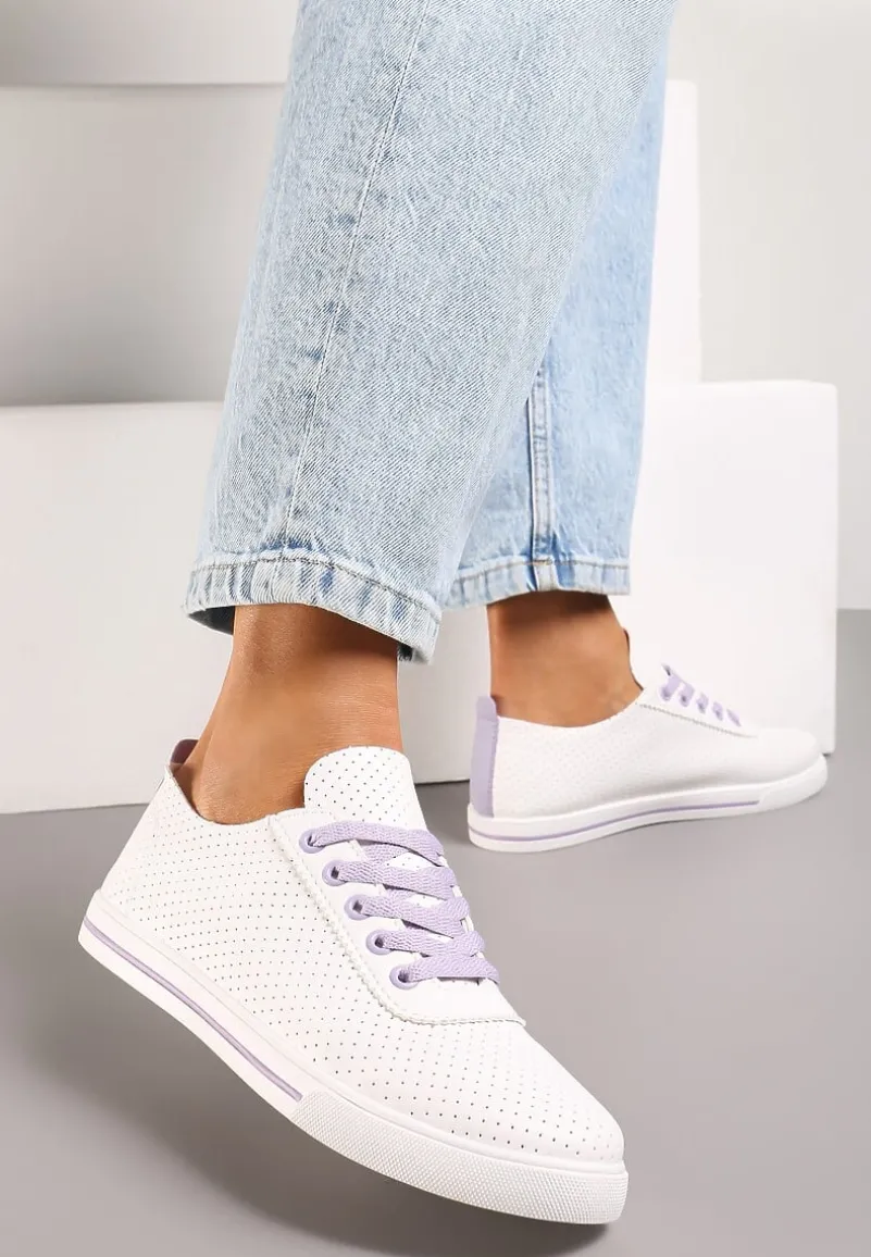 Tenisówki Mirnala na płaskiej podeszwie z dziurkami i ozdobną taśmą to kluczowy element damskiej garderoby na sportowe i casualowe stylizacje.