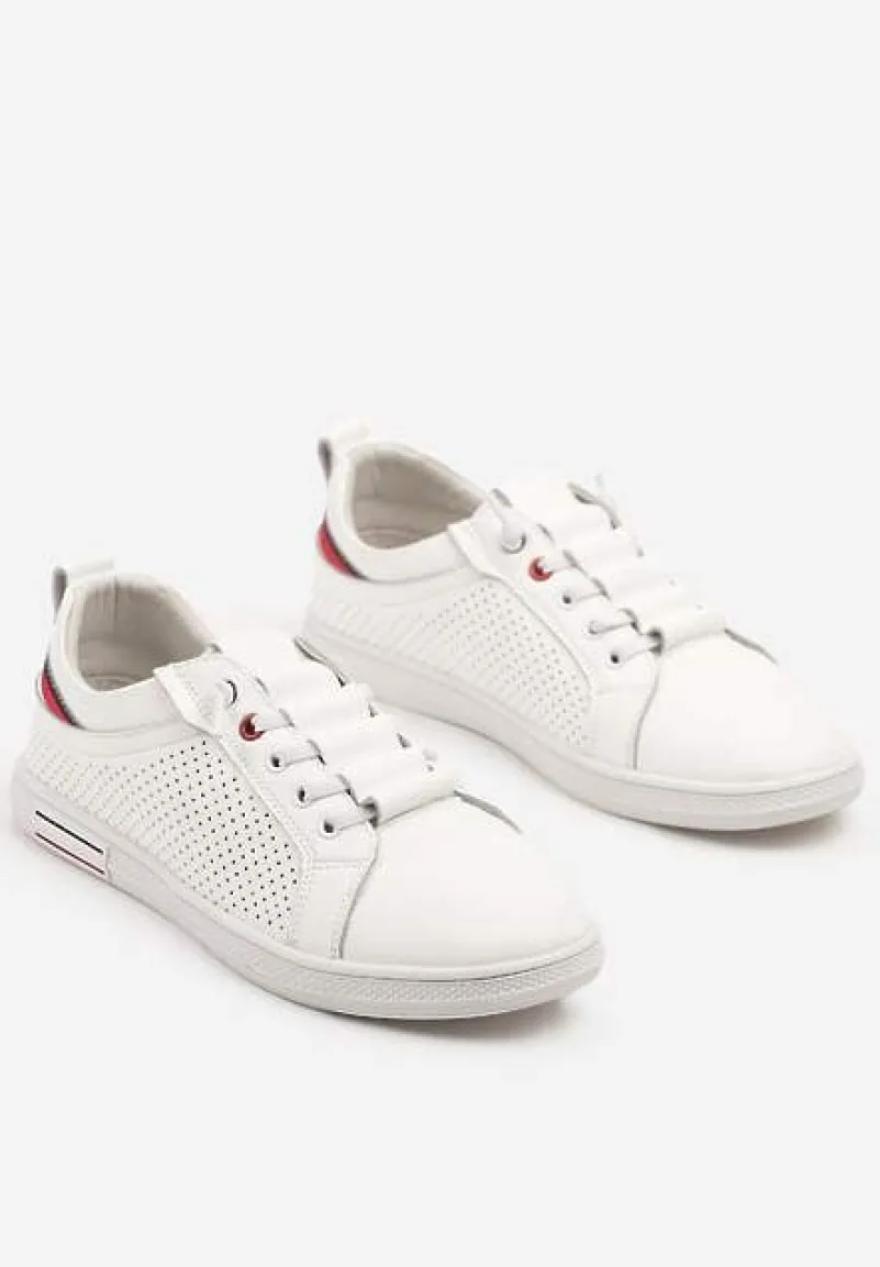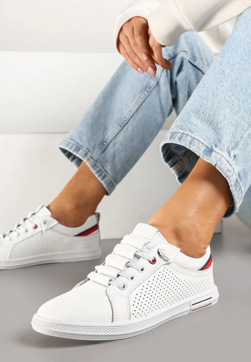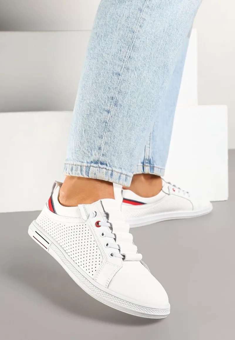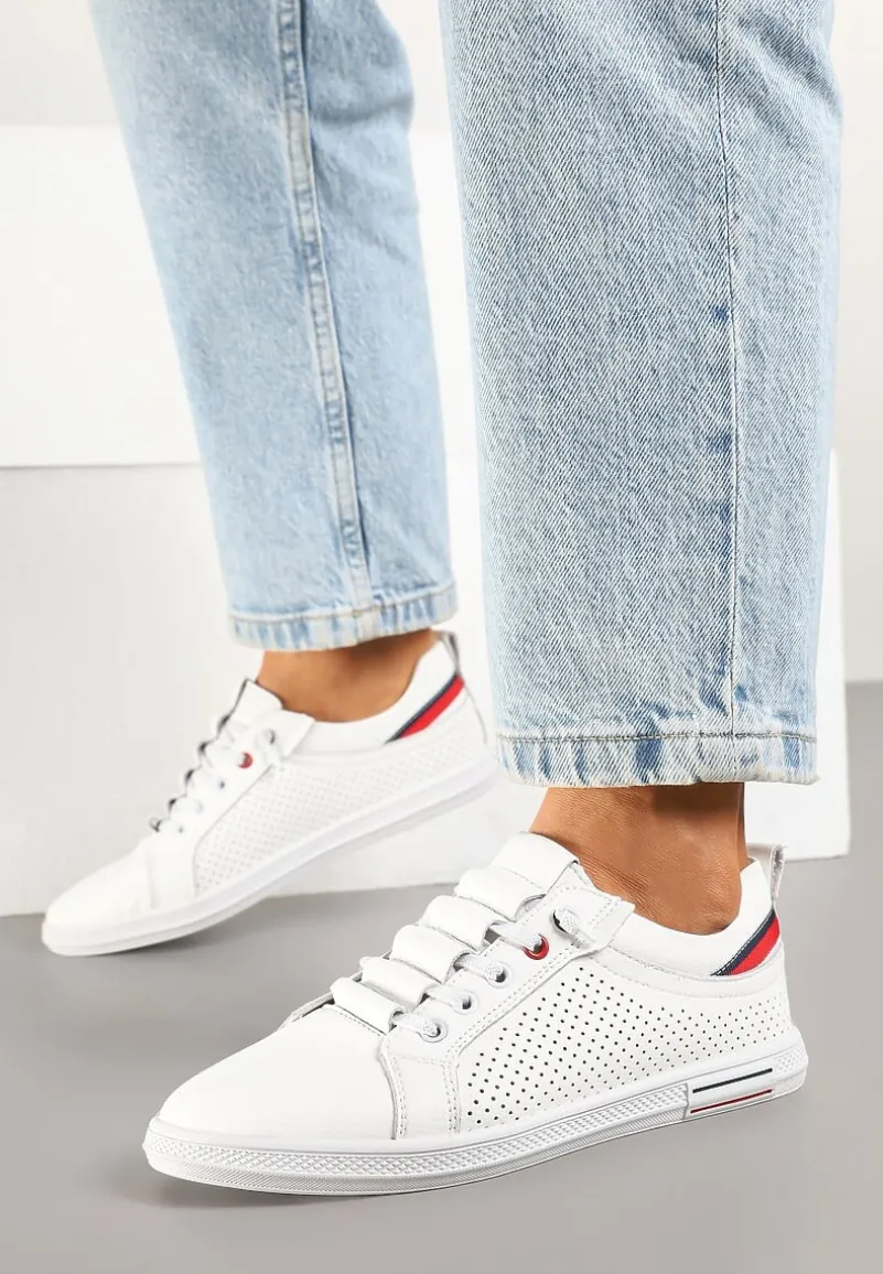Skórzane Tenisówki Pod Kostkę z Ozdobną Perforacją Mlinntia – perforowane detale dodają lekkości i modowego akcentu, idealne do codziennych stylizacji.