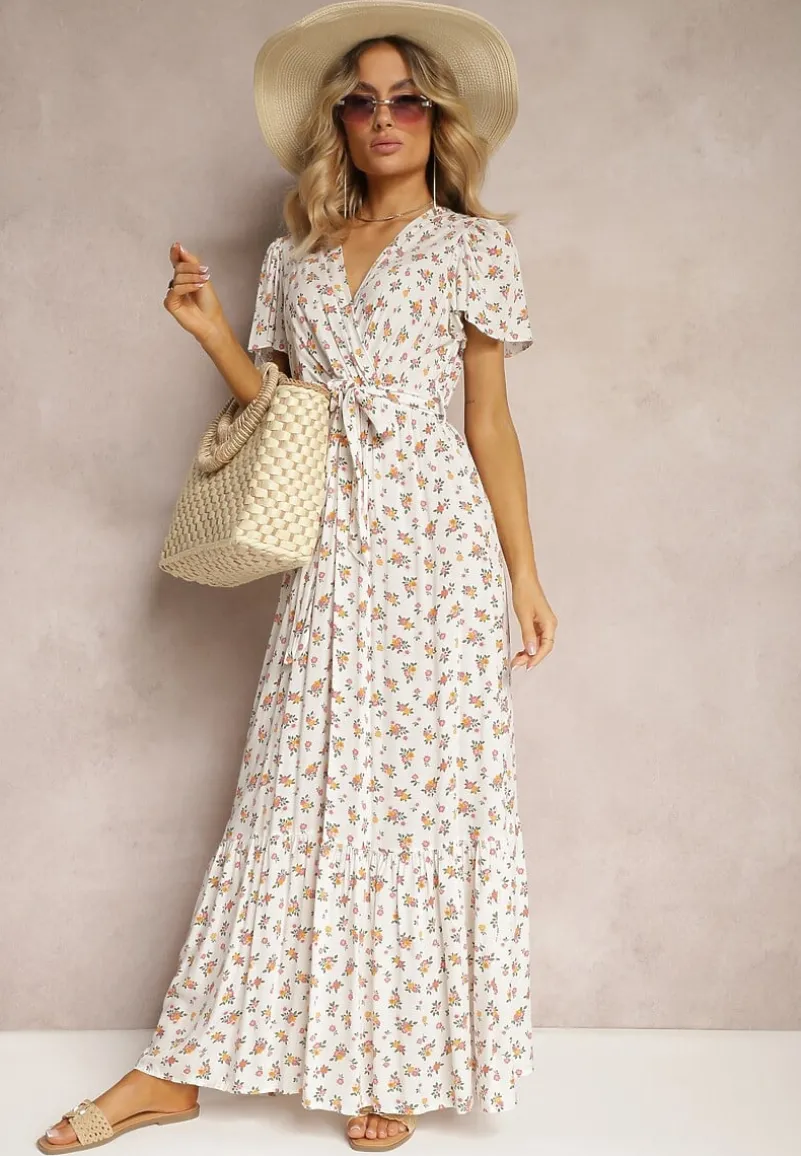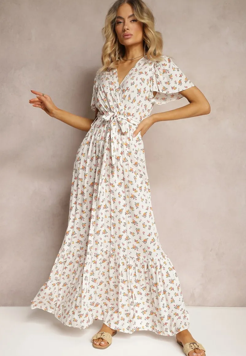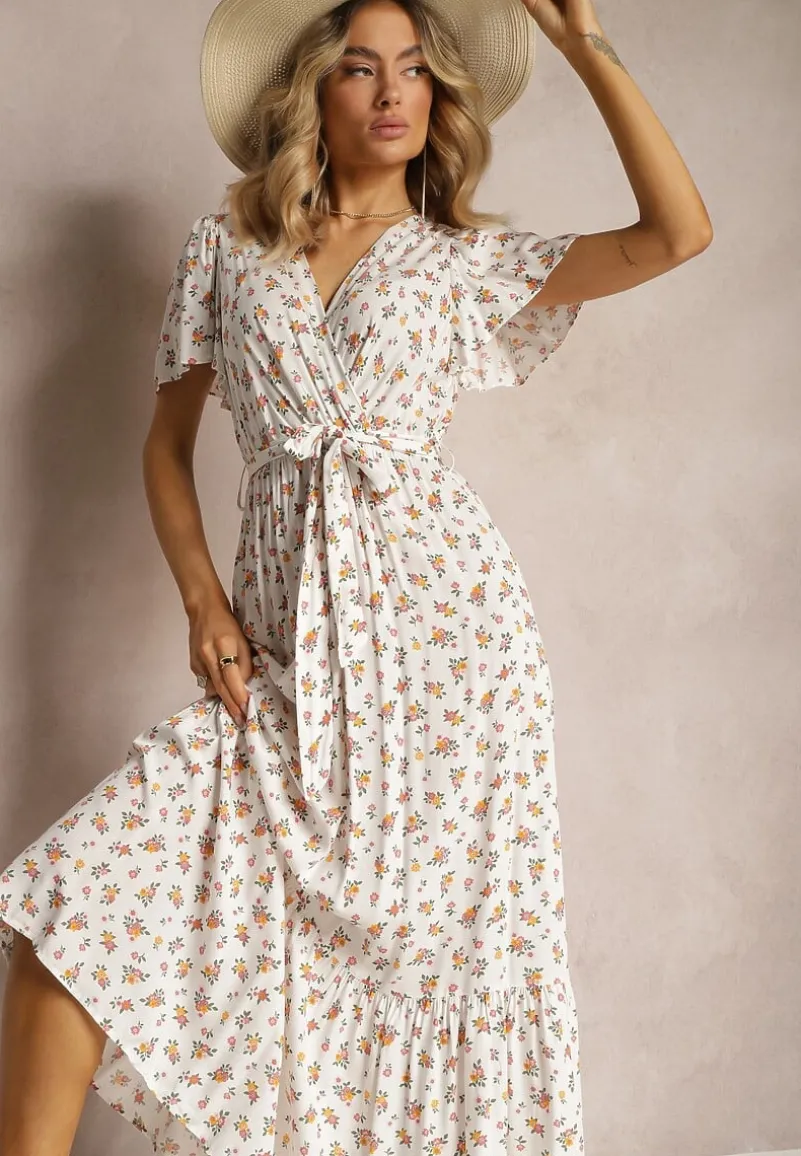 Sukienka Ganeslla to kwintesencja kobiecości w miejskim stylu. Jej delikatnie drapowany dekolt w kształcie litery V pięknie podkreśli Twoje atuty, a gumka w pasie wspaniale zarysuje talię, zapewniając wygodę i swobodę. Kwiatowy wzór ożywia zwiewną tkaninę z wiskozy, sprawiając, że kreacja idealnie wpisuje się w sezonowe trendy. Krótki rękaw to uniwersalny wybór na różne okazje – od popołudniowego spaceru po randkową kolację.