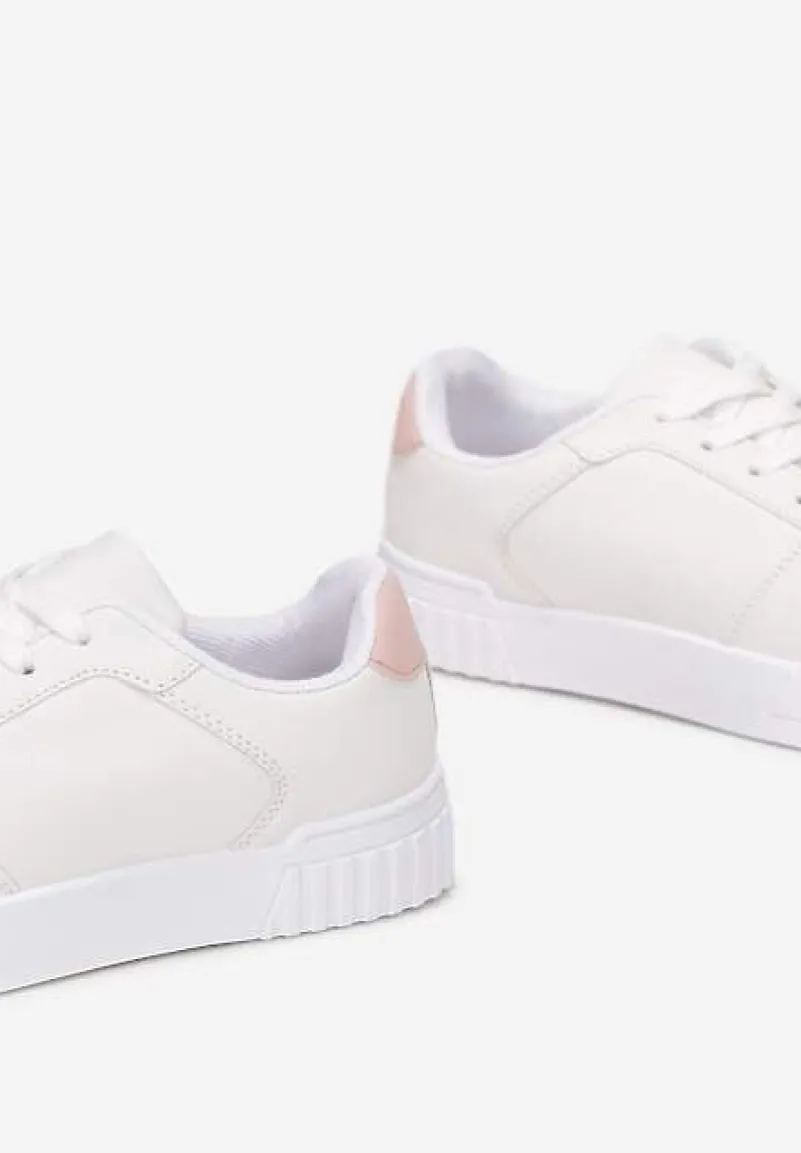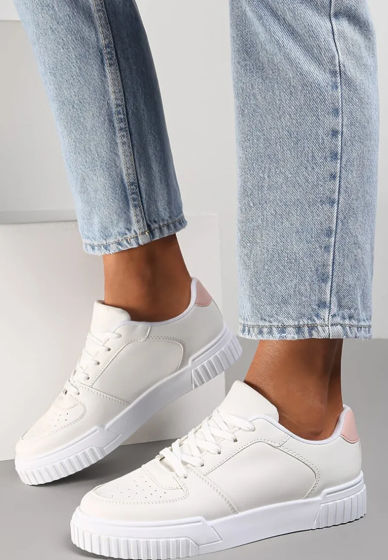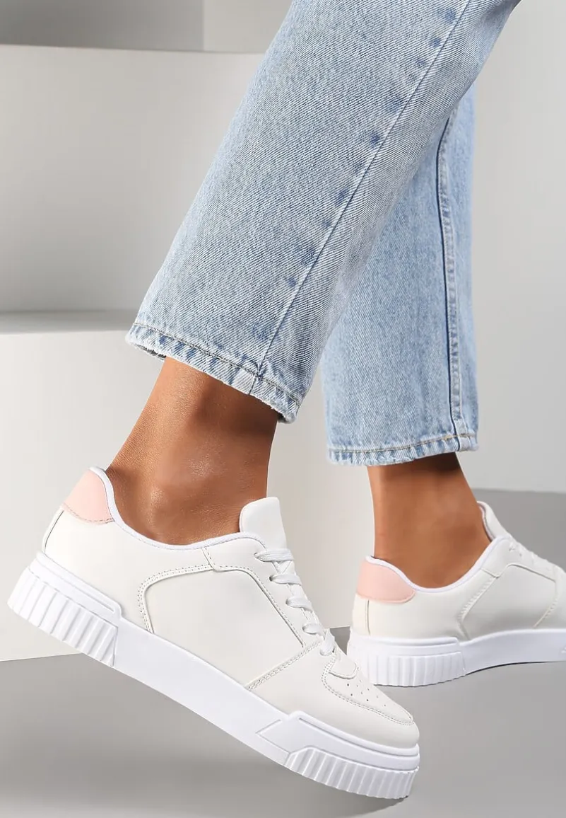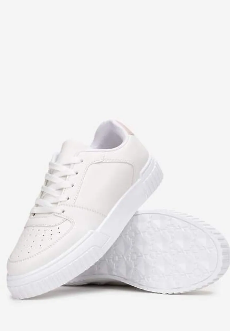 Sneakersy Amathanassa wykonane z gładkiej ekoskóry, zdobionej z przodu delikatną perforacją. Osadzone na płaskiej podeszwie z pionowym żłobieniem. Cholewka przed kostkę, dekorowana z tyłu wstawką z metalicznym połyskiem. Nosek zaokrąglony. Metaliczne wstawki dodają oryginalnego akcentu oraz subtelnie ożywią Twoją stylizację!