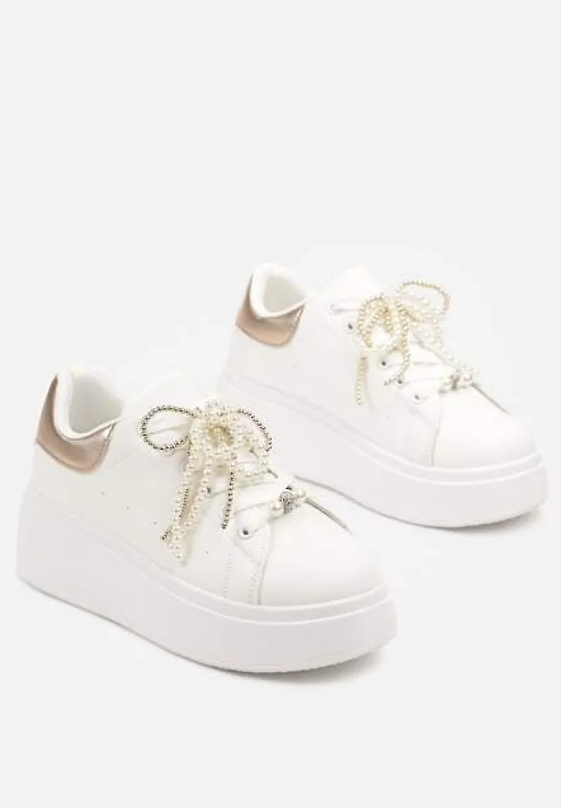 Sznurowane Sneakersy na platformie Selavia są idealne dla dziewczyn, które lubią wyróżniać się w tłumie. Ozdobne perełki i metalowe kuleczki nadają im subtelny blask, a platforma gwarantuje stabilność na każdym kroku. Sneakersy Selavia pasują do wielu stylizacji. Zabłyśnij w nich na co dzień, łącząc z luźnymi jeansami i crop topem lub postaw na elegancki kontrast, zestawiając z sukienką midi dla wyjątkowego efektu.