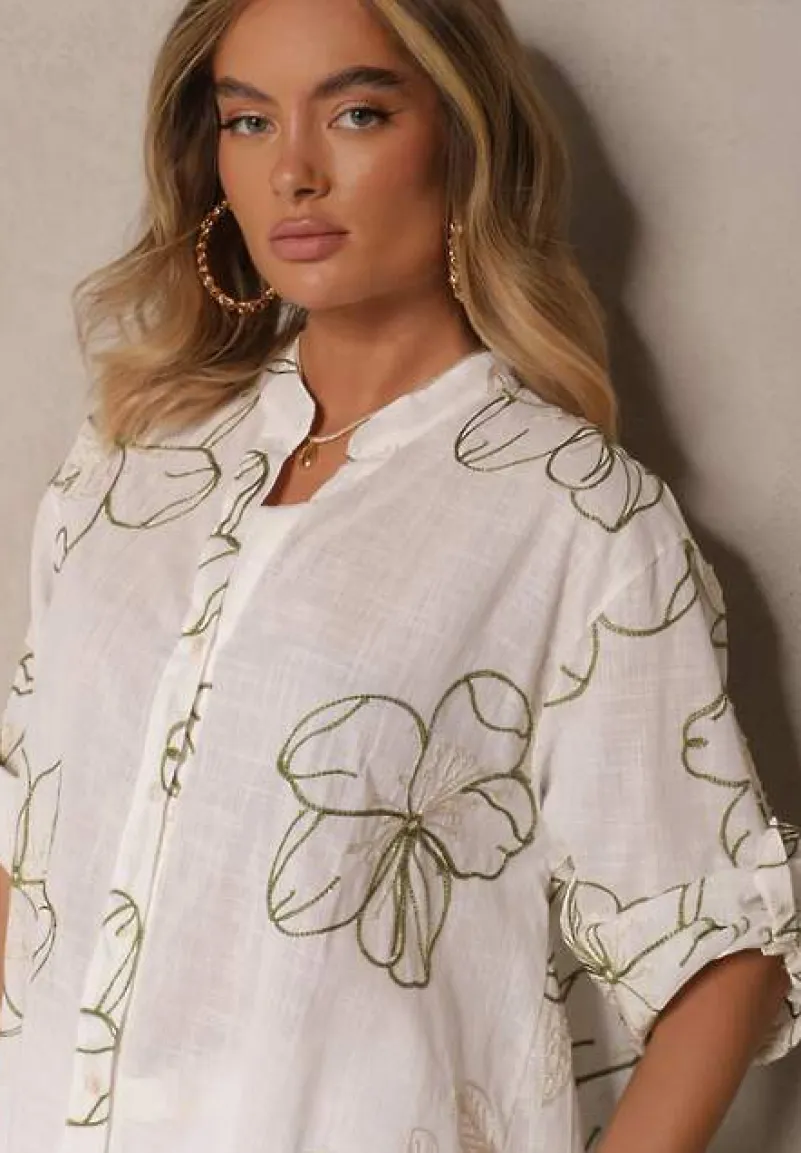 Odkryj wyjątkową koszulę o kroju oversize Follenea, która wyróżnia się swobodnym fasonem z podpinanymi rękawami. Dzięki subtelnym zdobieniom z haftem sprawdzi się doskonale zarówno na co dzień, jak i podczas eleganckich okazji. Klasyczny dekolt w serek zapewnia świeżość i wygodę noszenia. Stylizuj ją z ulubionymi jeansami i sneakersami, aby uzyskać swobodny look, lub zestaw ją z elegancką spódnicą i szpilkami na wieczorne wyjście. Koszula Follenea to must-have w szafie każdej kobiety, która ceni sobie styl, komfort i odrobinę oryginalności!