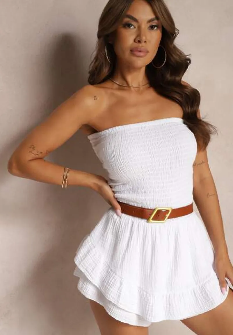 Biały Bawełniany Kombinezon z Elastyczną Górą i Falbankami Palelia