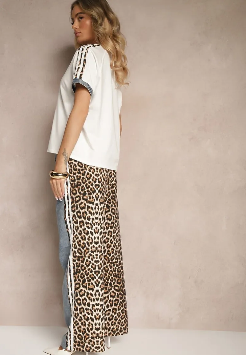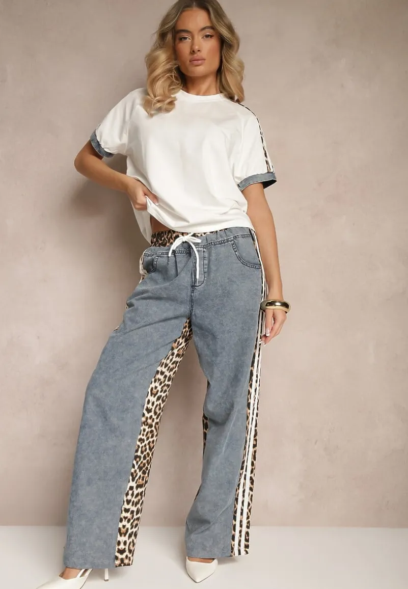 Dresowy Komplet Eltebira to idealne połączenie komfortu i niebanalnego stylu, które zadowoli każdą miłośniczkę mody. Panterkowe wzory i lampasy dodają całości charakteru, który wspaniale sprawdzi się na codziennych spotkaniach z przyjaciółmi. Rękawki bluzki wykończone są jeansem. Spodnie z gumką w pasie, ściągane są sznurkiem, a z przodu dwie wsuwane kieszenie. Połącz ten z trampkami na co dzień dla swobodnego, modowego looku.