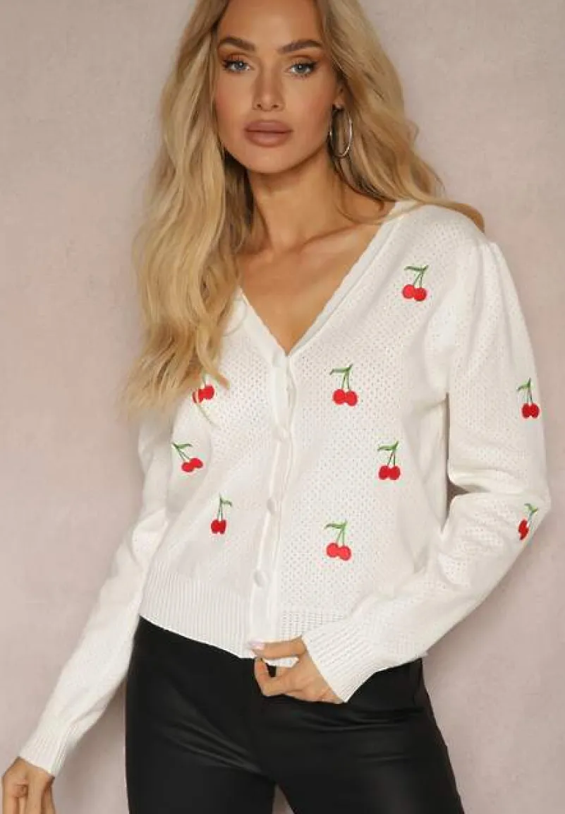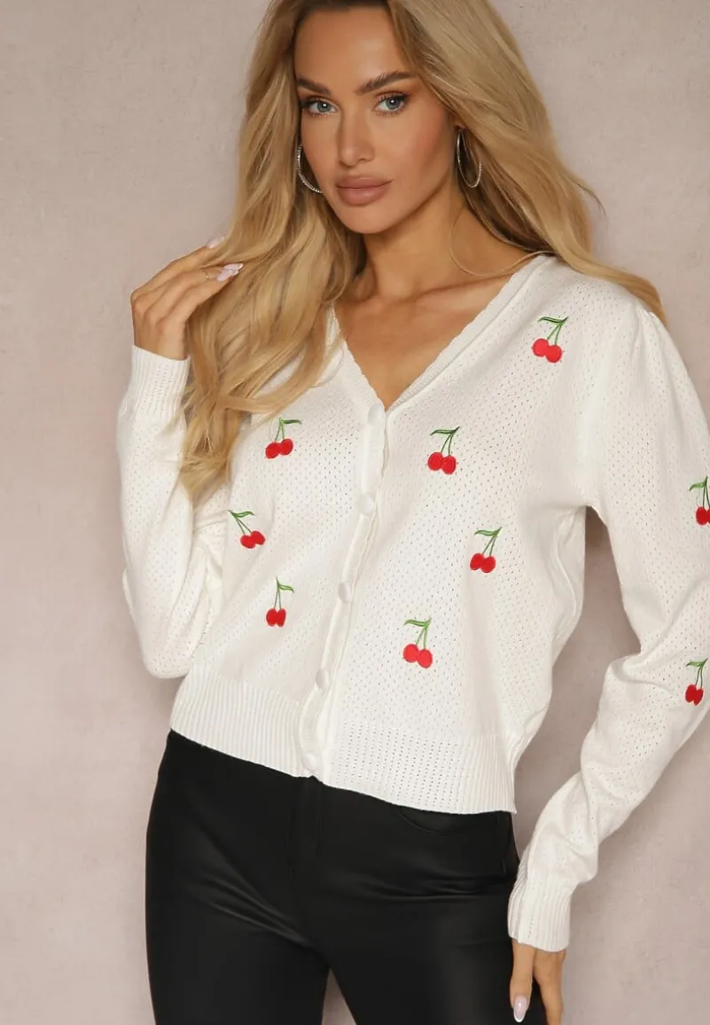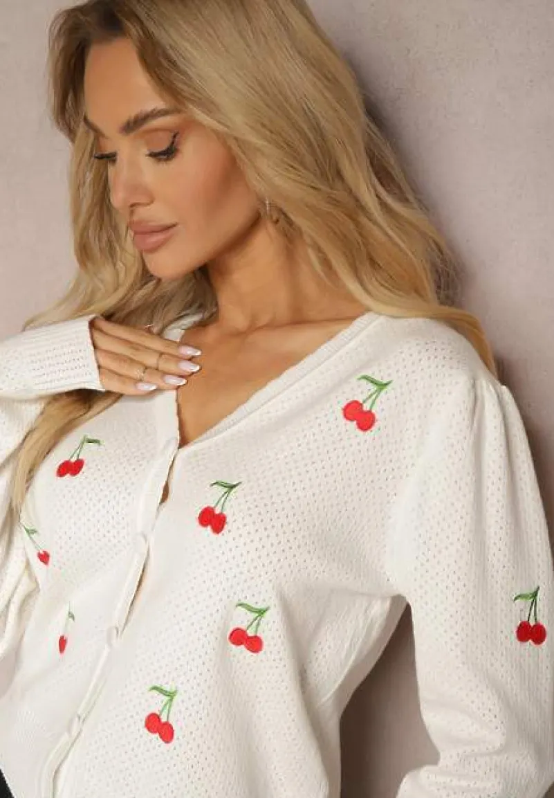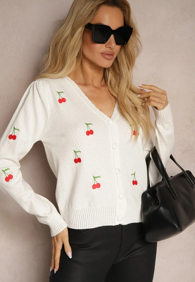 Kardigan Nirinia to esencja kobiecego uroku i swobodnego stylu. Przyjemny w dotyku, z delikatnym, okrągłym dekoltem, który subtelnie podkreśli Twoją szyję. Długość rękawa gwarantuje komfort noszenia zarówno w chłodniejsze, jak i ciepłe dni. Haftowane wisienki są uroczym detalem, który nada każdej stylizacji słodkiego charakteru. Kardigan doskonale sprawdzi się w codziennym wydaniu z jeansami i białą koszulką, ale również w eleganckim połączeniu z wąską spódnicą i szpilkami na wieczornym wyjściu. Niech to będzie Twój wybór na sezon, gdy chcesz czuć się wyjątkowo i zgodnie z najnowszymi trendami!