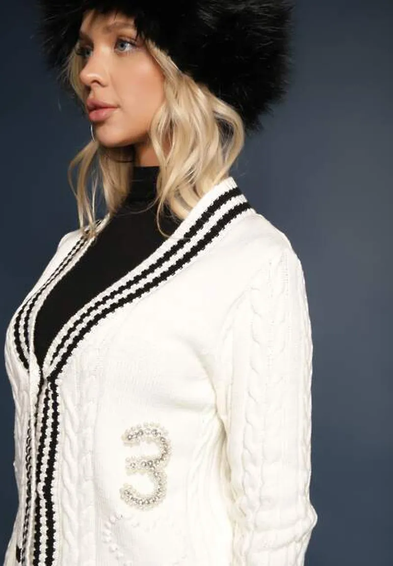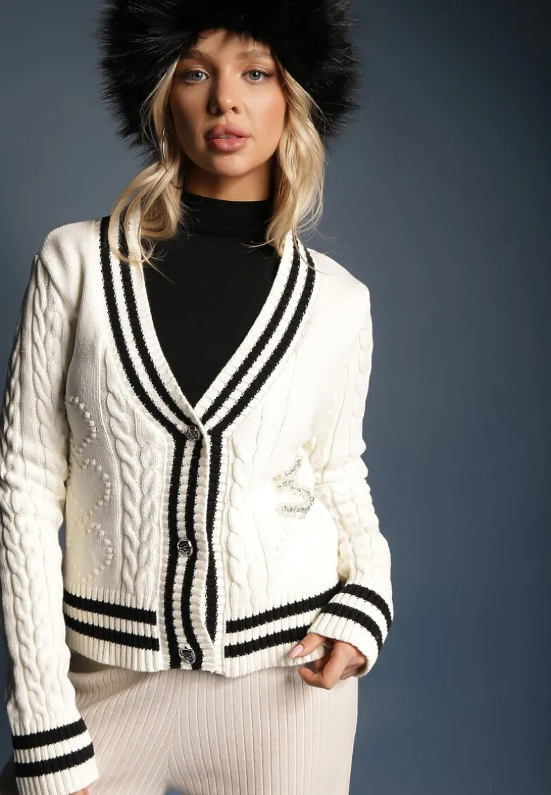 Zachwycający kardigan Liathea na guziki to synonim elegancji i uniwersalności, który doskonale wpasuje się w garderobę każdej kobiety śledzącej najnowsze trendy. Jego klasyczna linia z subtelnym dekoltem w kształcie litery V podkreśli sylwetkę. Długie rękawy oraz aplikacje z perełek i cyrkonii są niczym wisienka na torcie – dodają całości szyku i blasku. W zestawieniu ze zwiewną spódnicą i botkami stworzysz look doskonały na spotkanie z przyjaciółmi lub rodzinną kolację, a dodając do niego eleganckie spodnie i szpilki, uzyskasz outfit gotowy na biznesowe spotkanie lub uroczystości.