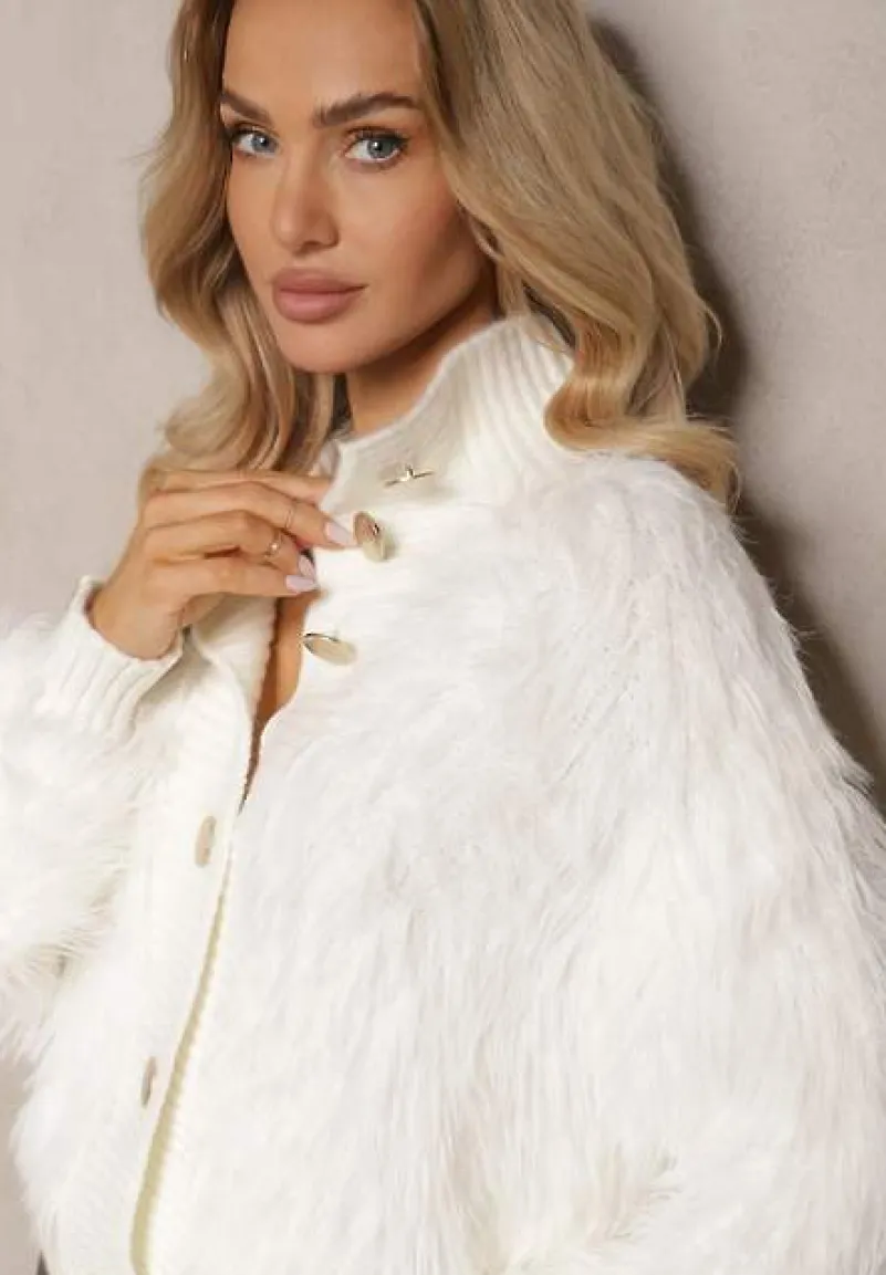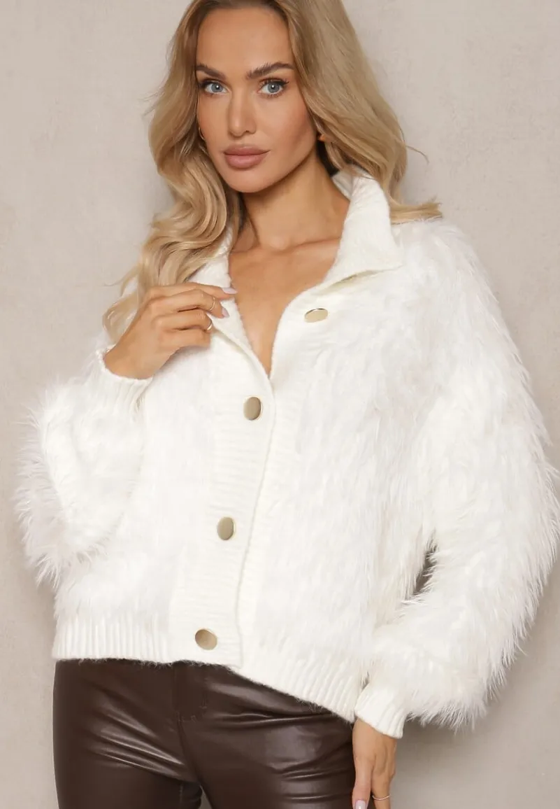 Kardigan Zinavia to esencja stylu oraz komfortu, która doskonale sprawdzi się w chłodniejsze dni. Wykonany z dzianiny z wełną, charakteryzuje się delikatną stójką podkreślającą szyję oraz ozdobnymi guzikami dodającymi charakteru. Prosty krój i puszysta faktura zapewniają wygodę oraz dodają odrobinę luksusu do codziennych stylizacji. Idealnie skomponuje się z dopasowanymi spodniami i botkami na obcasie, tworząc szykowny miejski zestaw na co dzień, a w połączeniu z elegancką spódnicą i szpilkami stworzy wyrafinowany look na specjalne okazje.