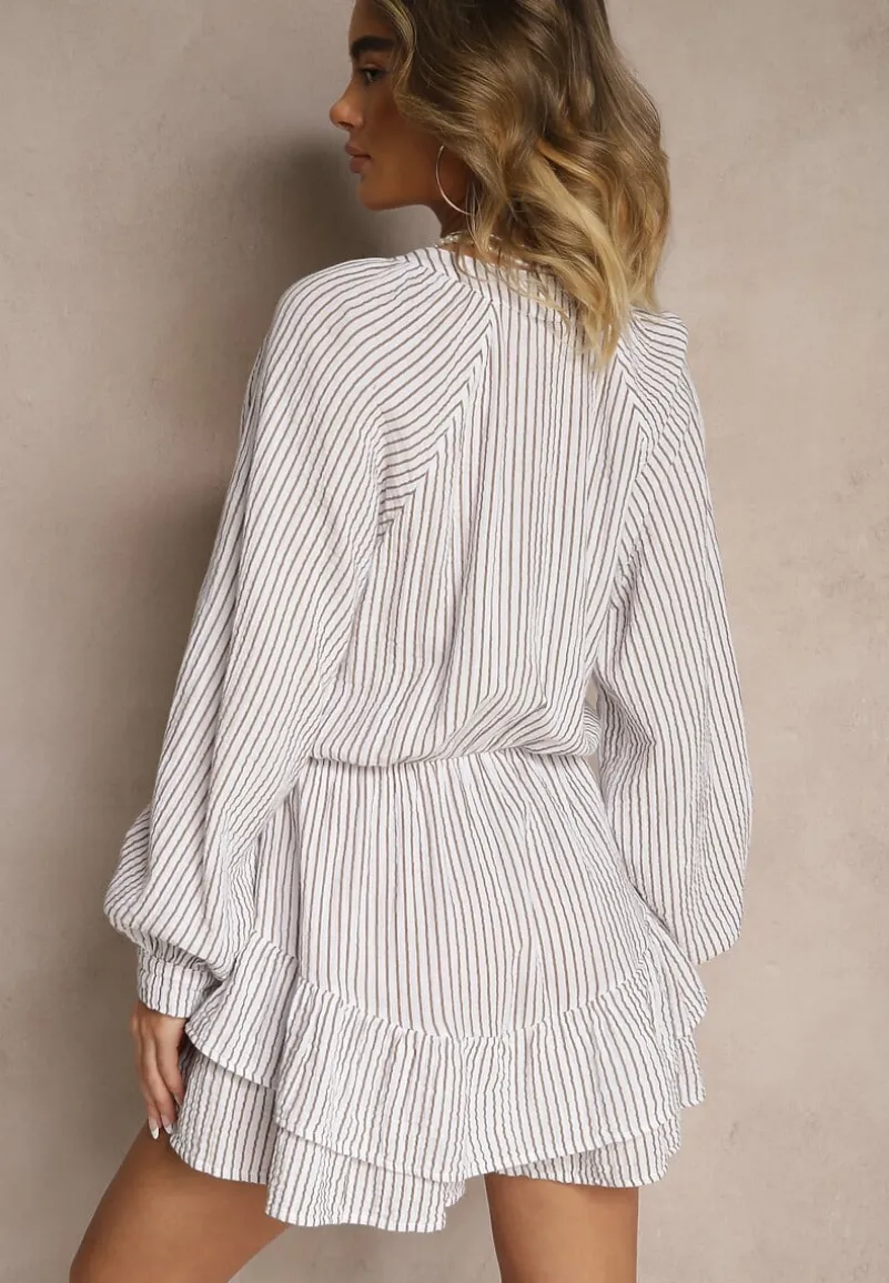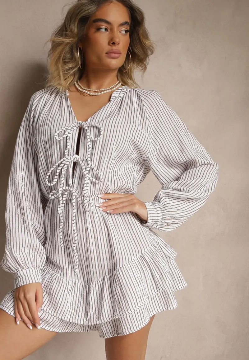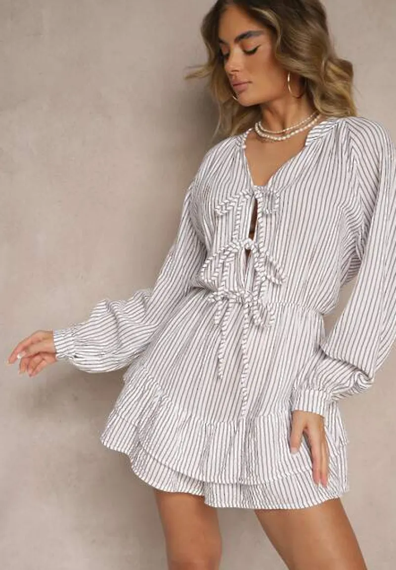 Biały Kombinezon w Cienkie Paski z Wiązaniem z Bawełny Ovivelle