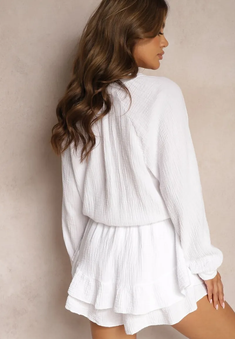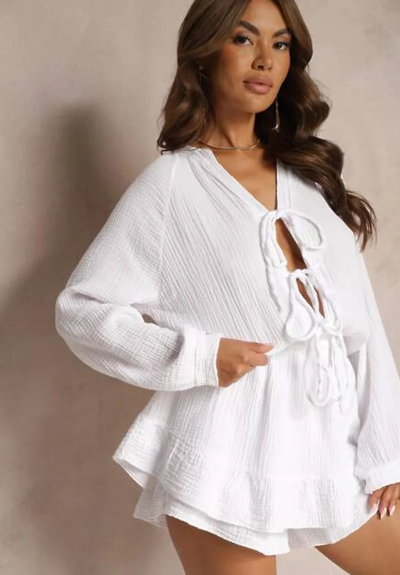 Biały Kombinezon z Bawełny Ozdobiony Wiązaniem i Falbankami Nalelia