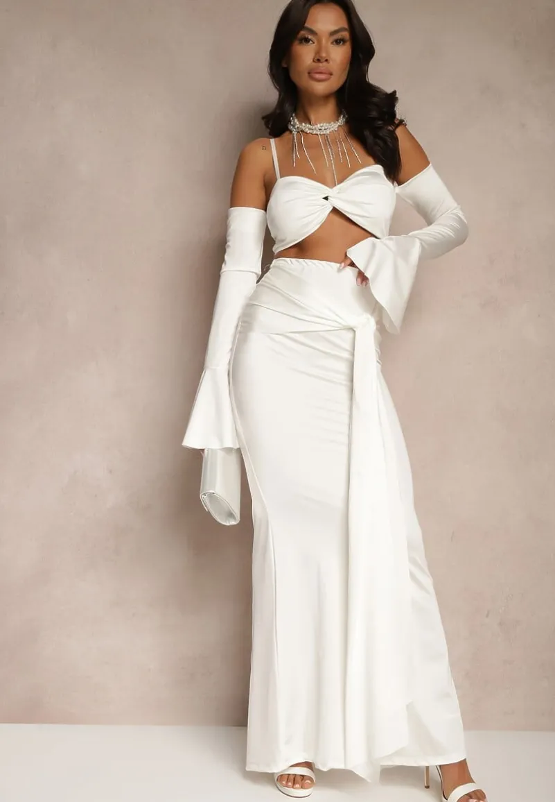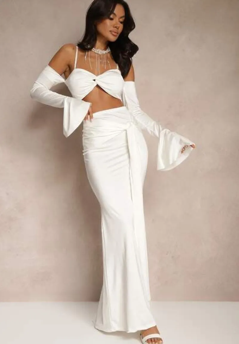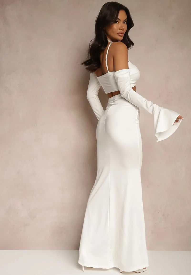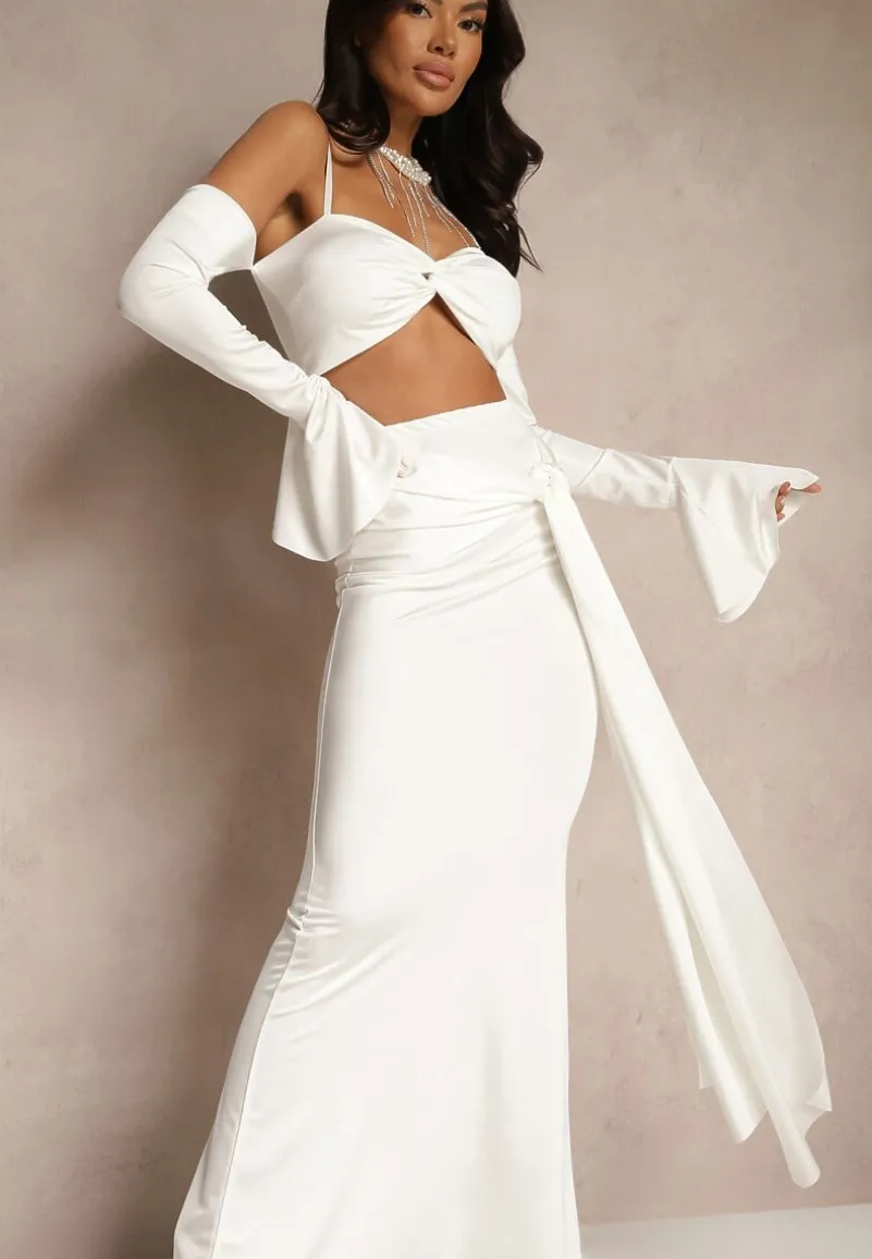 Komplet Adivaria to idealna propozycja dla wszystkich kobiet, które pragną podkreślić swoją sylwetkę i być na bieżąco z najnowszymi trendami. Dopasowana spódnica z efektownym trenem i top z regulowanymi ramiączkami i długimi rękawami stworzą zmysłową stylizację na wyjątkowe okazje — od wieczornego wyjścia po elegancką kolację. Materiał subtelnie opina ciało, zapewniając wygodę noszenia, jednocześnie dodając niepowtarzalnego uroku. Zestaw ten świetnie skomponuje się zarówno ze szpilkami i kopertówką, jak i z błyszczącymi sandałkami i torebką na łańcuszku. Top posiada wszyte miseczki.