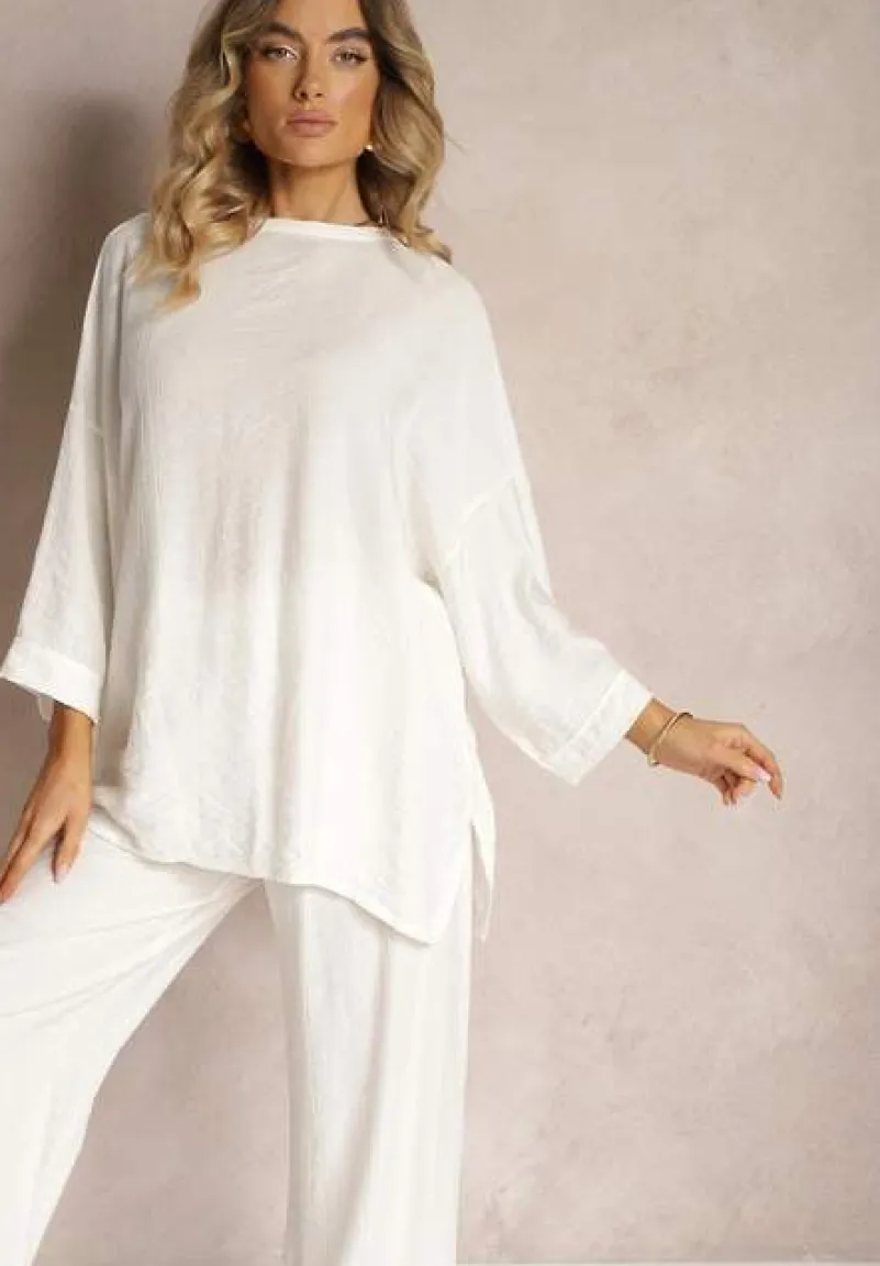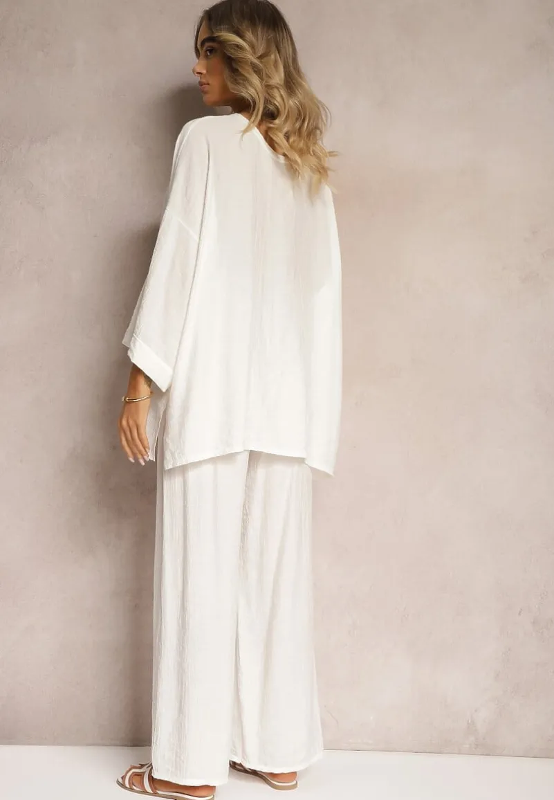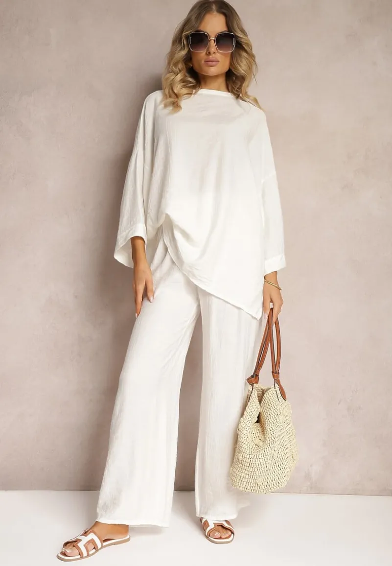 Komplet z wiskozy Qadrina to esencja kobiecości. Nietoperzowy fason bluzki dodaje stylizacji nowoczesnego akcentu, pozwalając jednocześnie na swobodę ruchów. Szerokie nogawki spodni optycznie wydłużają sylwetkę, a delikatny i uniwersalny wzór sprawia, że komplet świetnie sprawdzi się zarówno w codziennych zestawach, jak i podczas bardziej uroczystych okazji. W połączeniu z eleganckimi mokasynami i minimalistyczną biżuterią stworzysz look, który zachwyci na spotkaniu biznesowym, natomiast połączony z sandałkami na obcasie i torebką kopertówką, idealnie dopełni wieczorowy outfit.