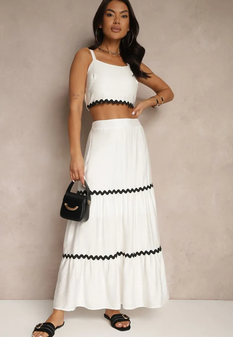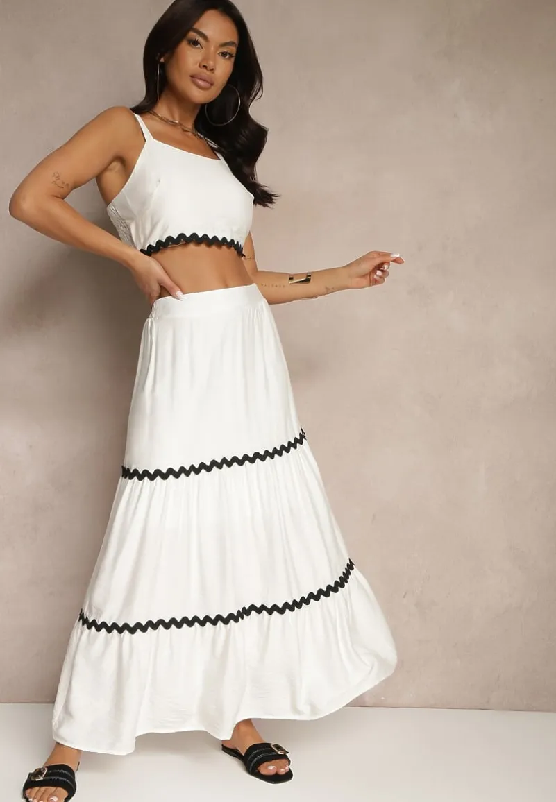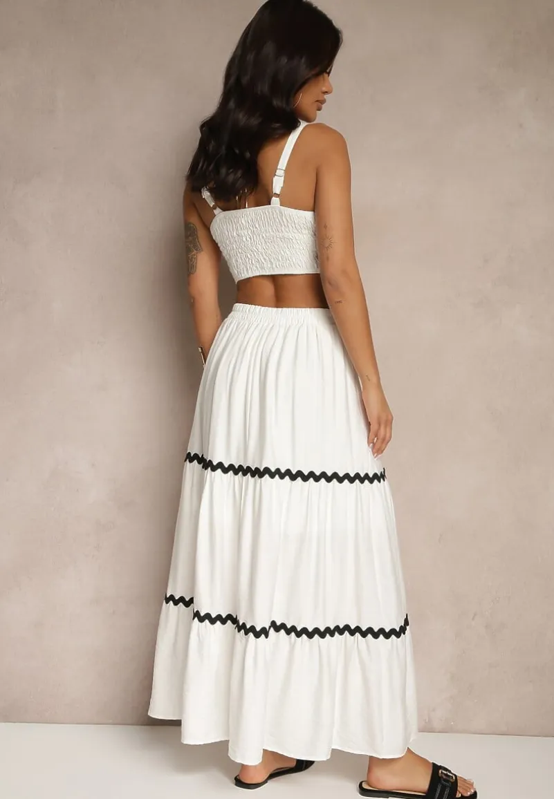 Odkryj niepowtarzalny urok kompletu Efrisia, składającego się z topu na ramiączkach i rozkloszowanej spódnicy z gumką w pasie. Jego luźny krój oraz lekki, elastyczny materiał sprawiają, że doskonale dopasowuje się do sylwetki, zapewniając komfort przez cały dzień. Idealny wybór na wiosenne i letnie dni, zestaw ten znakomicie sprawdzi się zarówno na co dzień, jak i na specjalne okazje. Zestaw go z ulubionymi sandałami i delikatną biżuterią na lunch z przyjaciółkami, a na wieczorne wyjście dobierz eleganckie szpilki i kopertówkę.