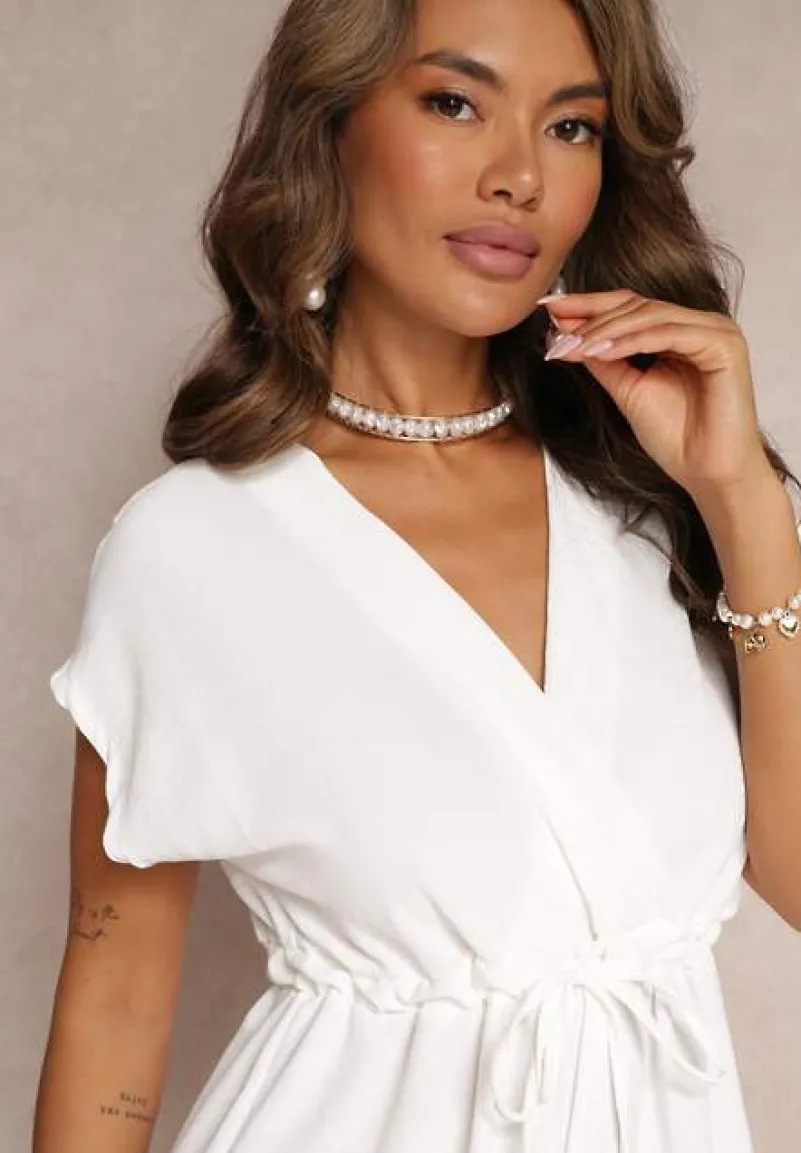 Biały Krótki Kombinezon ze Ściągaczem w Talii Weam