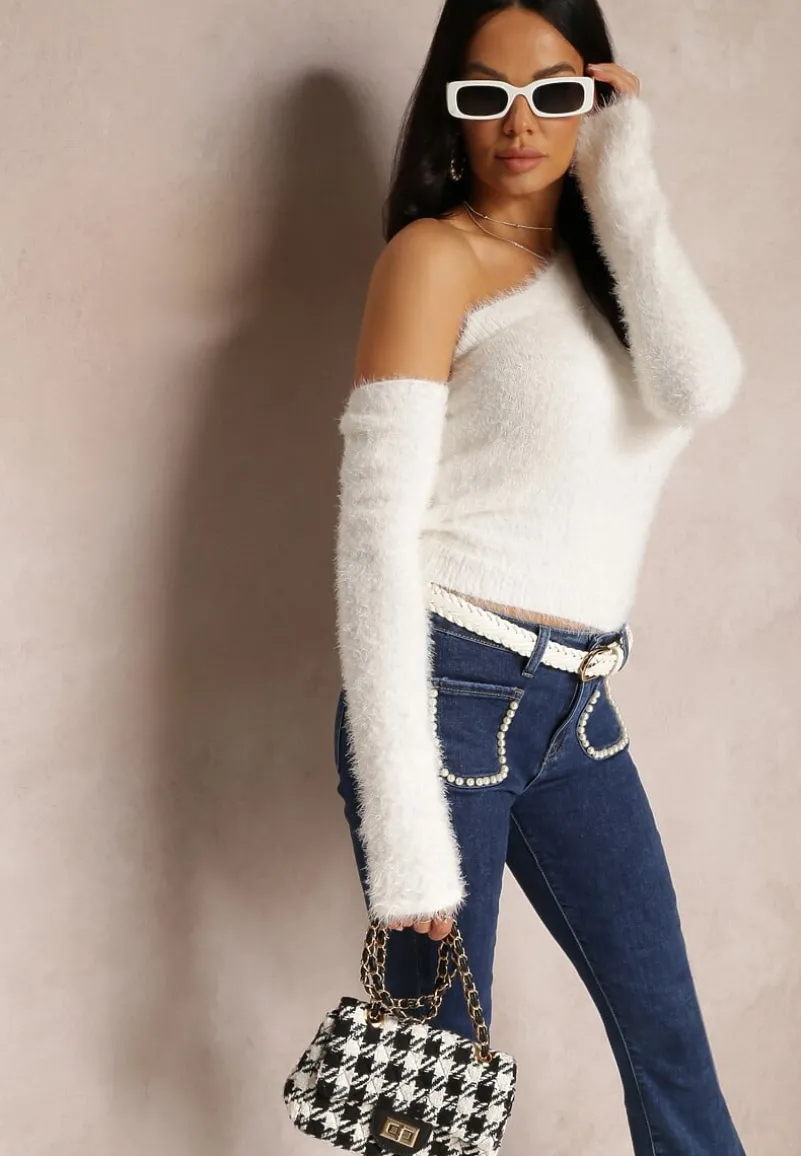 Sweter na Jedno Ramię Pholy to doskonały wybór dla każdej modnej kobiety, która chce wyróżnić się w tłumie. Asymetryczny dekolt subtelnie eksponuje ramię, dodając zmysłowości, a długi rękaw z otworem na kciuk zapewnia komfort nawet w chłodniejsze dni. Idealny na wieczorne wyjścia i swobodne spotkania — zestaw go z eleganckimi spodniami i botkami na co dzień lub z dopasowaną spódnicą ołówkową i szpilkami na formalne wydarzenia. Stylowy fason i kobiecy krój czynią go must-havem w szafie każdej odważnej fashionistki.
