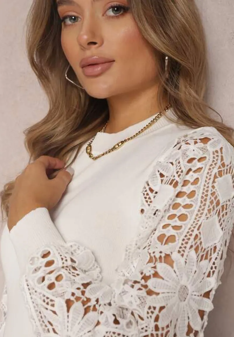 Sweter Haidione z gładkiej, miękkiej dzianiny w jednym odcieniu. Dopasowany fason modelu, długie, bufiaste rękawy wykonano z pięknej koronki. Mankiet zakończono elastycznym ściągaczem. Przy szyi dopasowany półgolf, który podkreśli kobiecą szyję. Rewelacyjny sweter boho doskonale sprawdzi się jako dodatek do jeansów skinny high waist oraz kozaków na słupku.