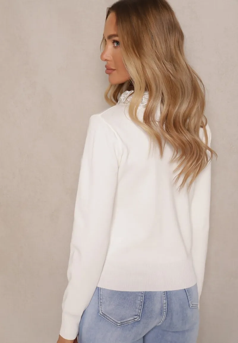 Sweter z Wiskozą z Ozdobnym Kołnierzykiem Avlinda to idealna propozycja dla fanek subtelnej elegancji i aktualnych trendów. Jego długi rękaw i ozdobny kołnierzyk dodają klasy i finezji, a dekolt subtelnie podkreśla linię szyi. Wykonany z dzianiny z wiskozą, świetnie sprawdzi się w sezonie przejściowym, a jego lekko elastyczny materiał zapewni komfort noszenia. Na co dzień zestaw go z jeansami i botkami, a na wyjątkowe okazje dodaj eleganckie spodnie i delikatną biżuterię, by poczuć się wyjątkowo. Musisz go mieć!