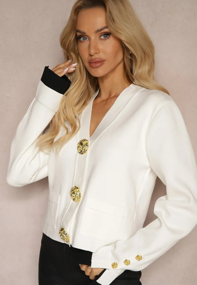 Wiskozowy Kardigan Benavira to esencja kobiecości okraszona szczyptą ekstrawagancji. Jego głęboki dekolt w kształcie litery V pięknie eksponuje szyję, nadając sylwetce wyrafinowanego charakteru. Pełne elegancji, duże ozdobne guziki są nie tylko praktycznym, ale i efektownym elementem. Kardigan doskonale sprawdzi się zarówno na co dzień, jak i na wyjątkowe okazje. Zestaw go z minimalistyczną sukienką i botkami dla codziennego looku lub podkreśl jego wyjątkowość spódnicą ołówkową i szpilkami przy wyborze wieczorowego outfitu.