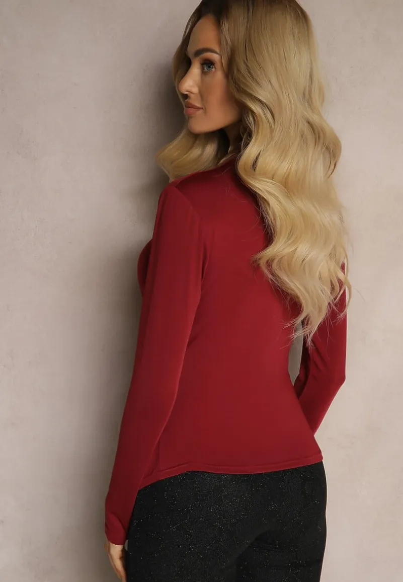 Bluzka Siss z półgolfem i wycięciem na półgolfie. Dopasowany, kopertowy fason. Z długim rękawem. Wykonana z gładkiej tkaniny z przewagą wiskozy. Subtelnie podkreśli Twoje atuty. To świetna bluzka do imprezowych, jak i codziennych stylizacji – doda Ci mnóstwo inspiracji. Pięknie prezentuje się ze skórzanym dołem!