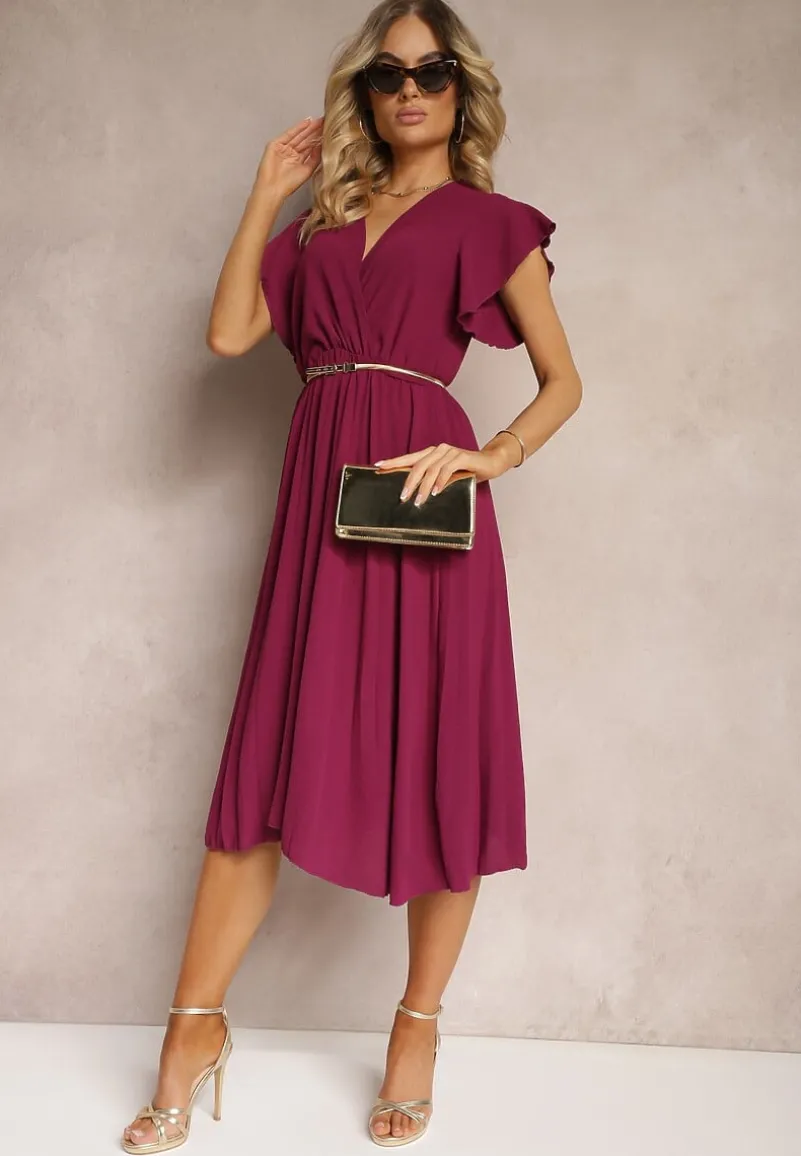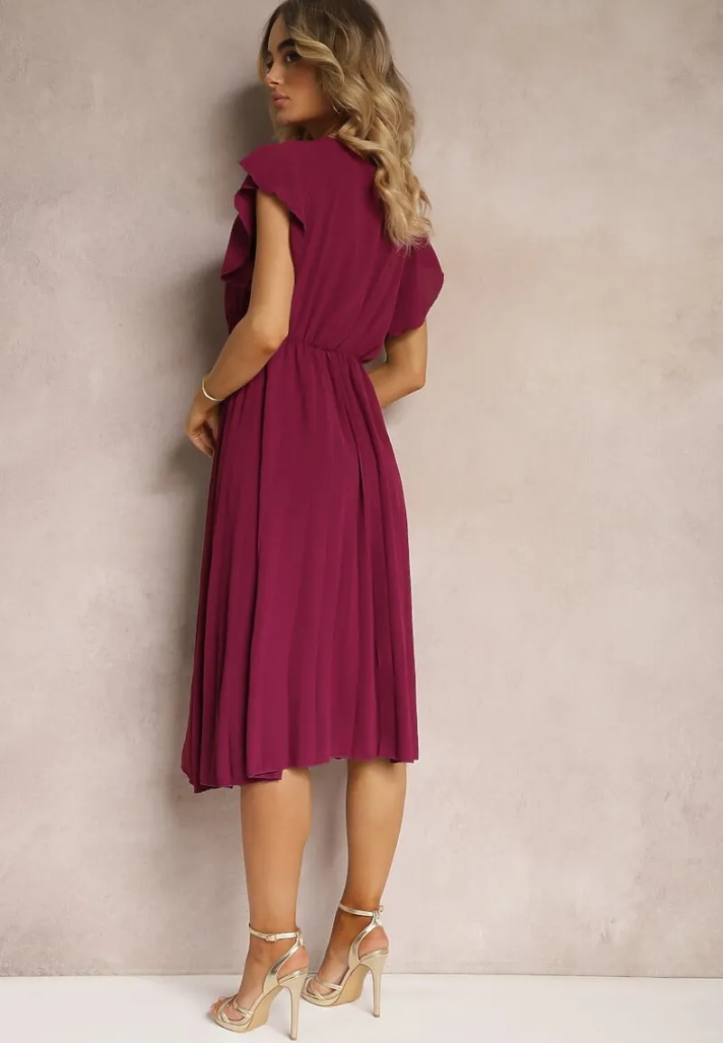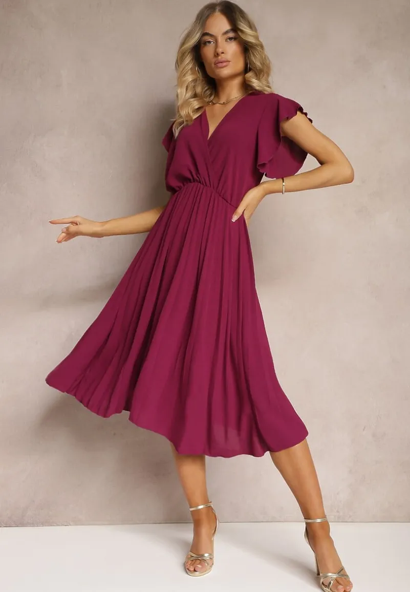Poznaj sukienkę Doetta, która zachwyca swoim niebanalnym krojem plisowanym – doskonała do stworzenia wyrafinowanej stylizacji na każdą okazję. Elegancki fason z trójkątnym dekoltem pięknie podkreśla szyję, zaś gumka w pasie subtelnie akcentuje talię, nadając sylwetce zgrabne proporcje. Krótkie rękawy dodają całości lekkości, idealnie komponując się z romantycznym charakterem kreacji. Wymiary gumki w pasie po rozciągnięciu: S/M – 65 cm.