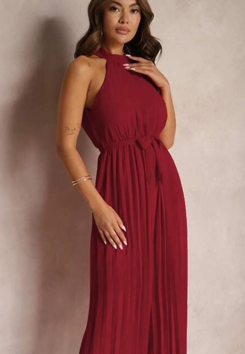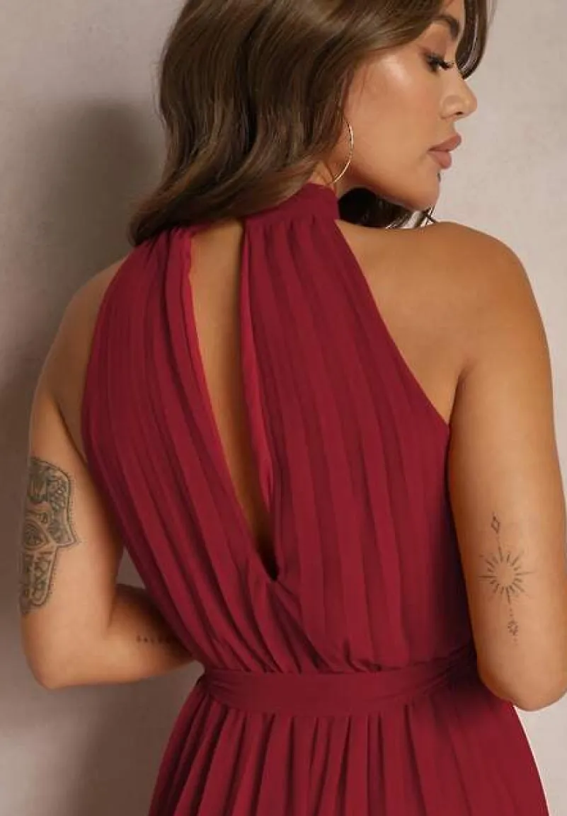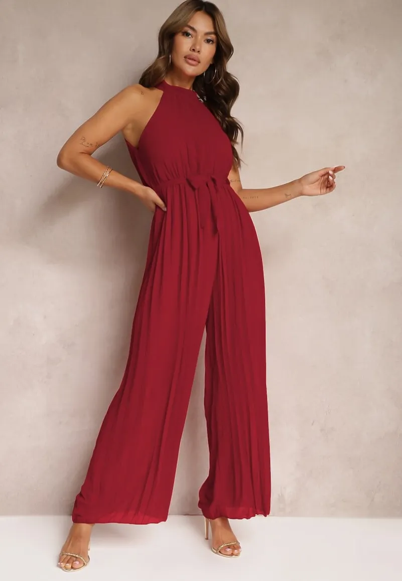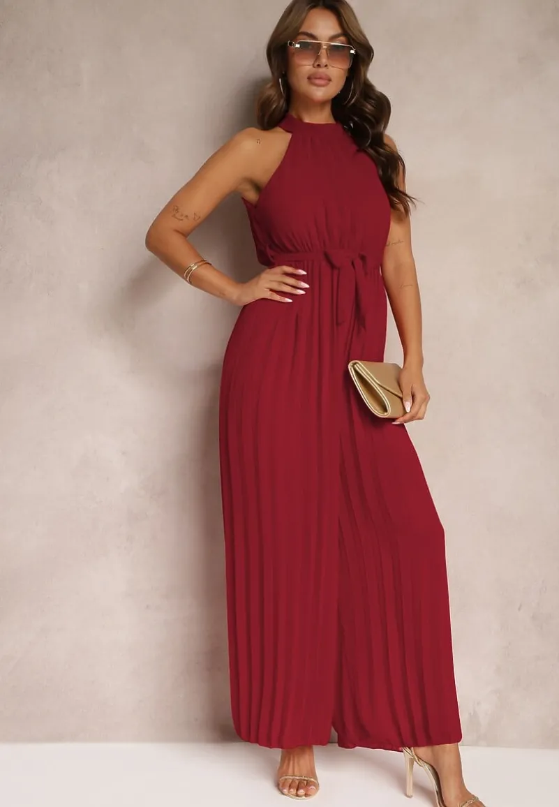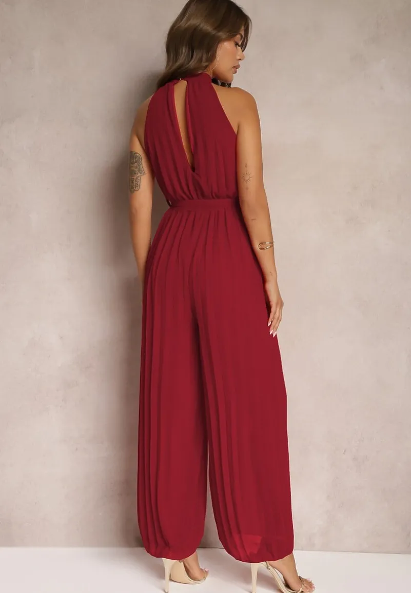 Bordowy Kombinezon z Dekoltem Typu Halter i Gumką w Talii Zolefia