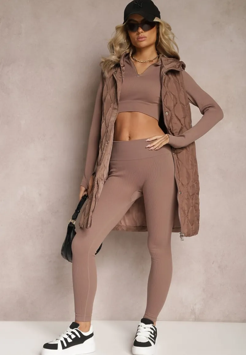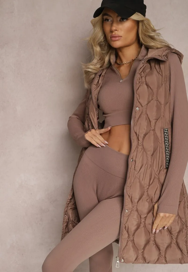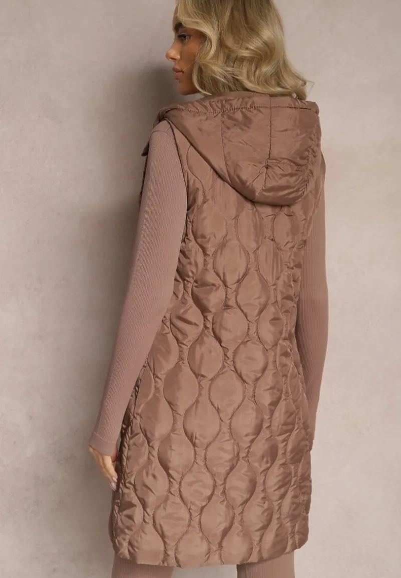 Kamizelka Nallona zdobiona pikowaniem, z nieodpinanym kapturem. Zapinana z przodu na zamek błyskawiczny ukryty pod plisą na napy. Na wysokości pasa wsuwane kieszenie.