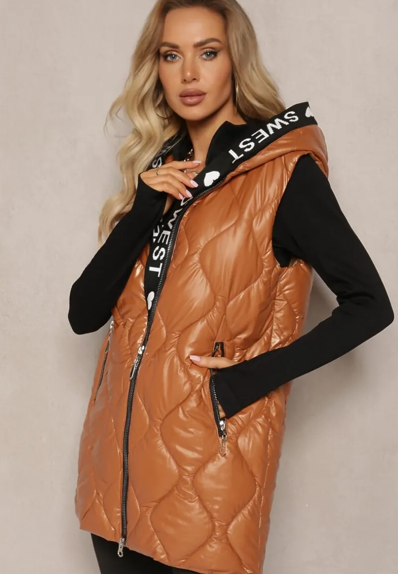 Pikowana kamizelka Taneli z kapturem o dłuższym fasonie to stylowy element garderoby, który łączy w sobie funkcjonalność i modny design. Idealna na sezon jesień/wiosna — pikowanie chroni przed wiatrem i deszczem.