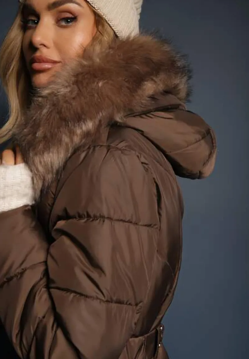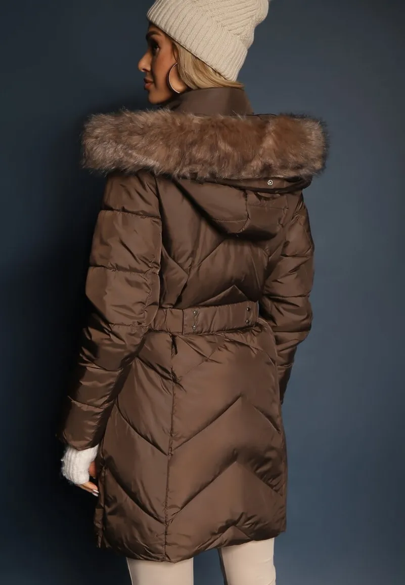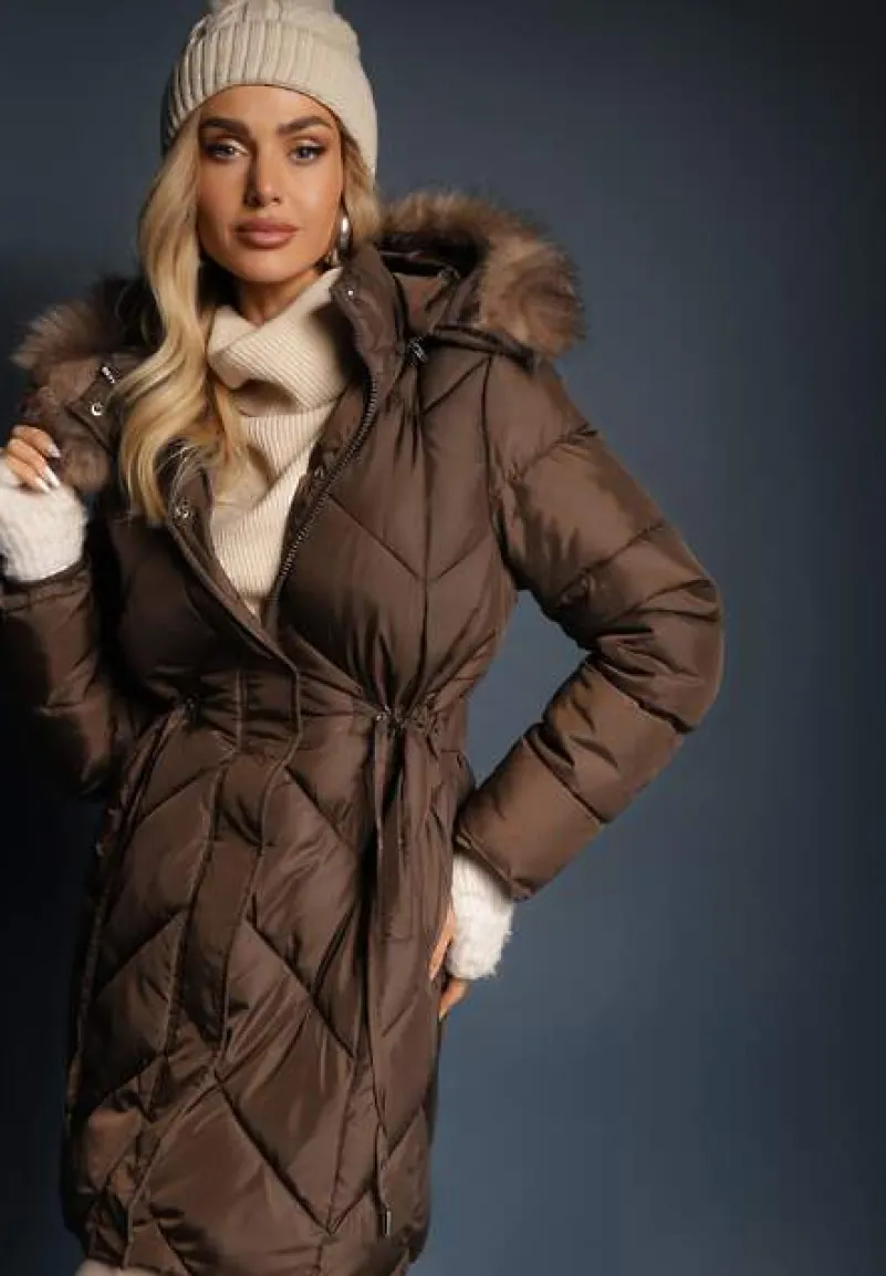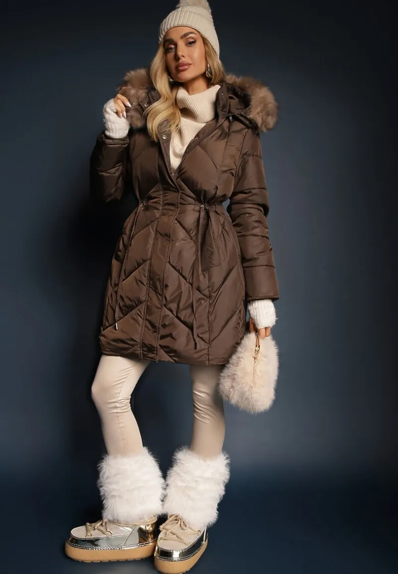 Kurtka Abelasa – idealnie podkreśla talię, jest delikatnie pikowana i ozdobiona sztucznym futerkiem.