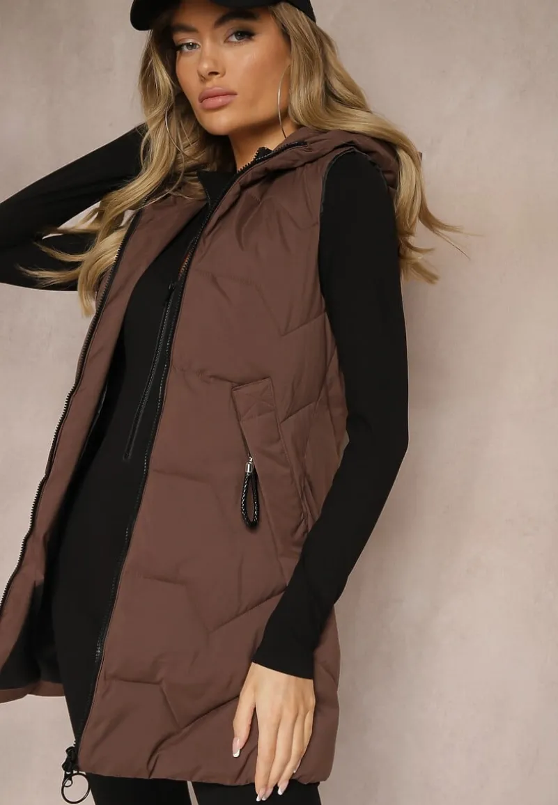 Odkryj styl z pikowaną kamizelką o długim kroju, idealną na sezon przejściowy. Jej luźna linia zapewnia swobodę ruchów, a kaptur dodaje praktyczności w dniu pełnym niespodzianek pogodowych. Prosty, ale świetnie skrojony fason podkreśla twoją sylwetkę, niezależnie od okazji. Dla codziennej wygody zestaw ją z jeansami i ulubionymi sneakersami, a gdy nadchodzą formalne momenty, dodaj eleganckie spodnie i błyszczące dodatki – będziesz wyglądać stylowo bez wysiłku.