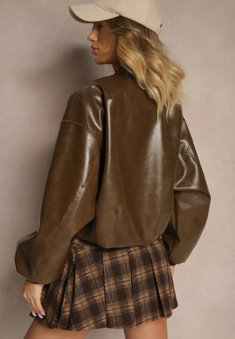Kurtka Bomberka z Wiskozą z Imitacji Skóry Erivessa to kwintesencja miejskiego stylu, który doda charakteru każdej stylizacji. Krój na suwak i efektowny fason ze wsuwanymi kieszeniami sprawiają, że idealnie komponuje się z jeansami i sneakersami na codzienne wyjścia. Minimalistyczne zdobienia subtelnie podkreślają Twoją sylwetkę, podążając za najnowszymi trendami.