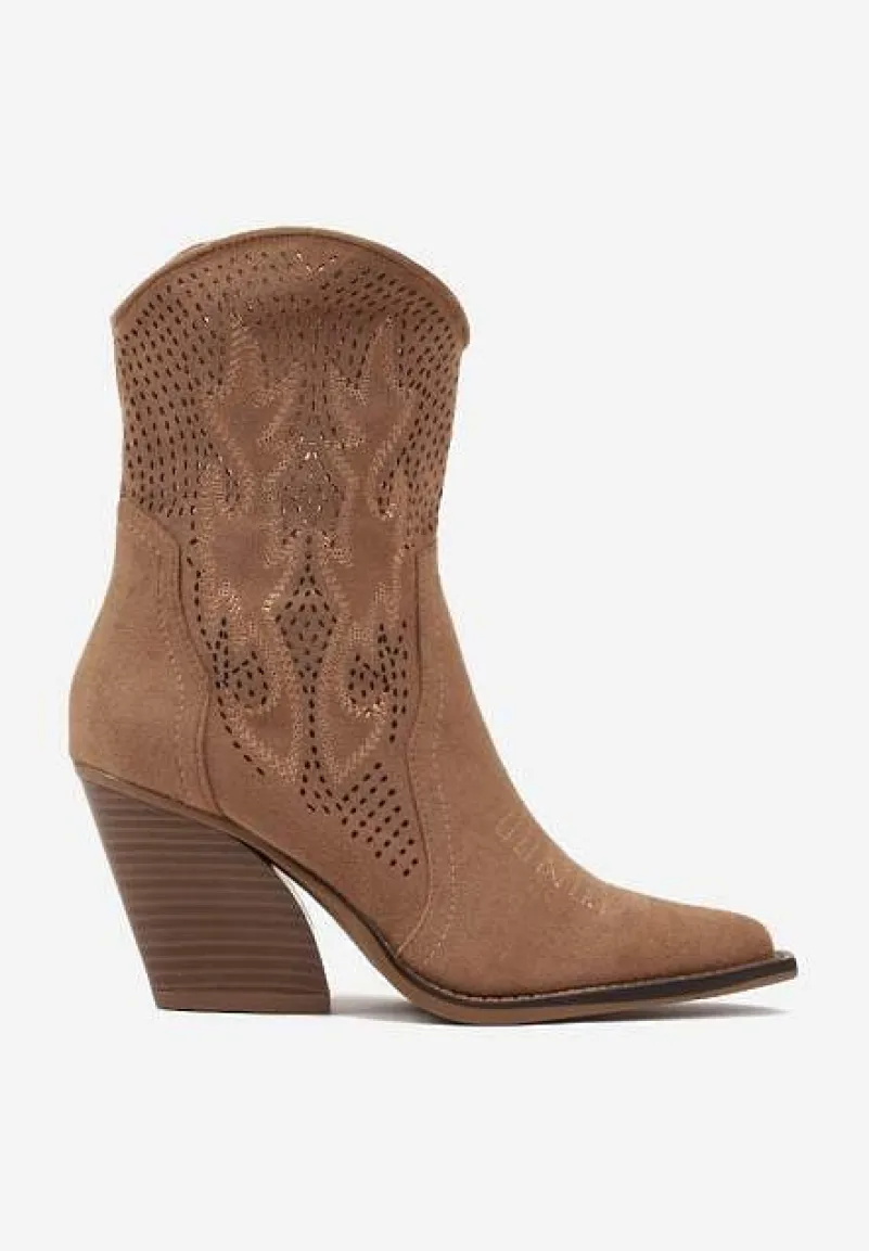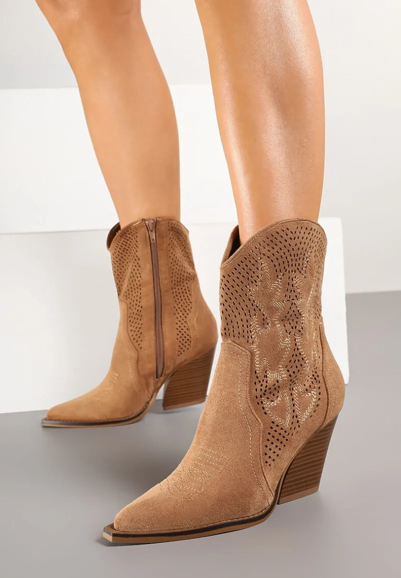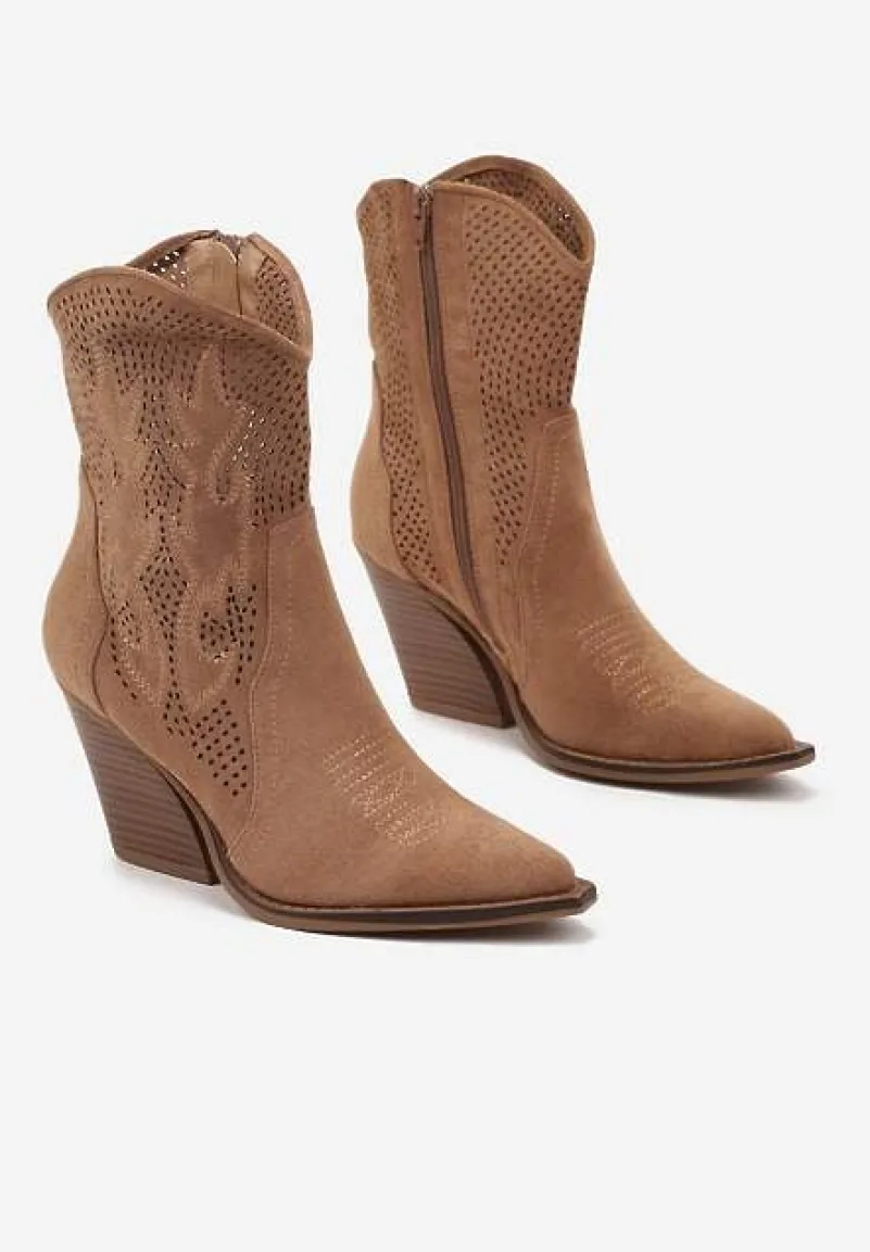 Ażurowe Botki Kowbojki na Stożkowym Obcasie Leanorin to idealny wybór dla kobiet ceniących modne stylizacje. Stożkowy obcas dodaje im charakteru, a delikatne perforacje nadają lekkości. Zapięcie na zamek błyskawiczny ułatwia zakładanie i zdejmowanie, a spiczasty nosek dodaje elegancji. Idealne na sezon przejściowy — zestaw je z jeansami i koszulą na co dzień lub sukienką boho na wieczorne wyjście.