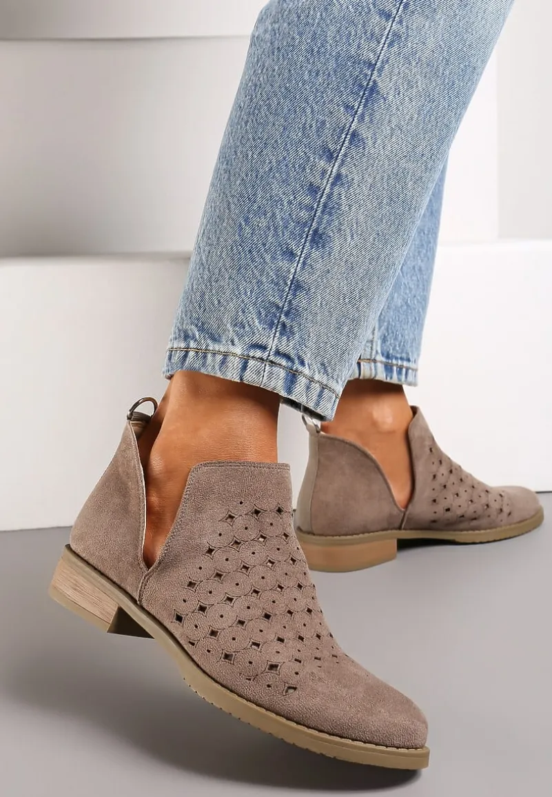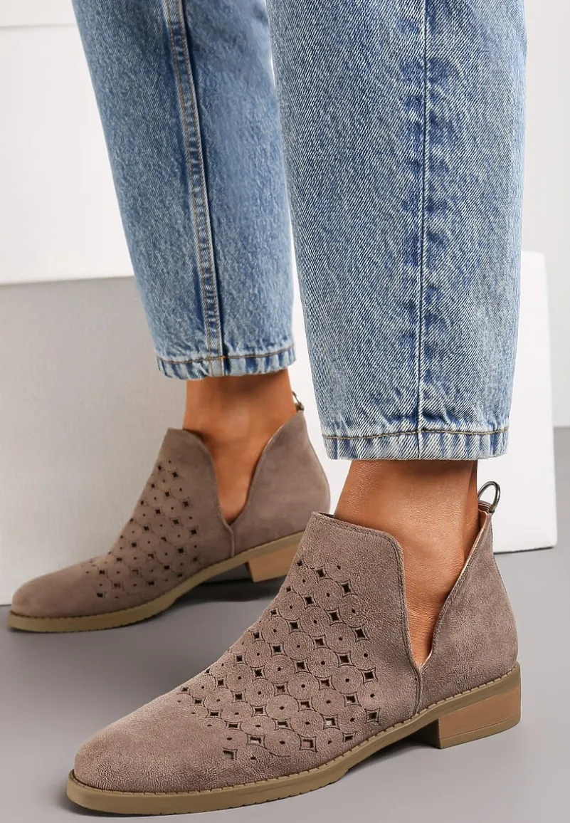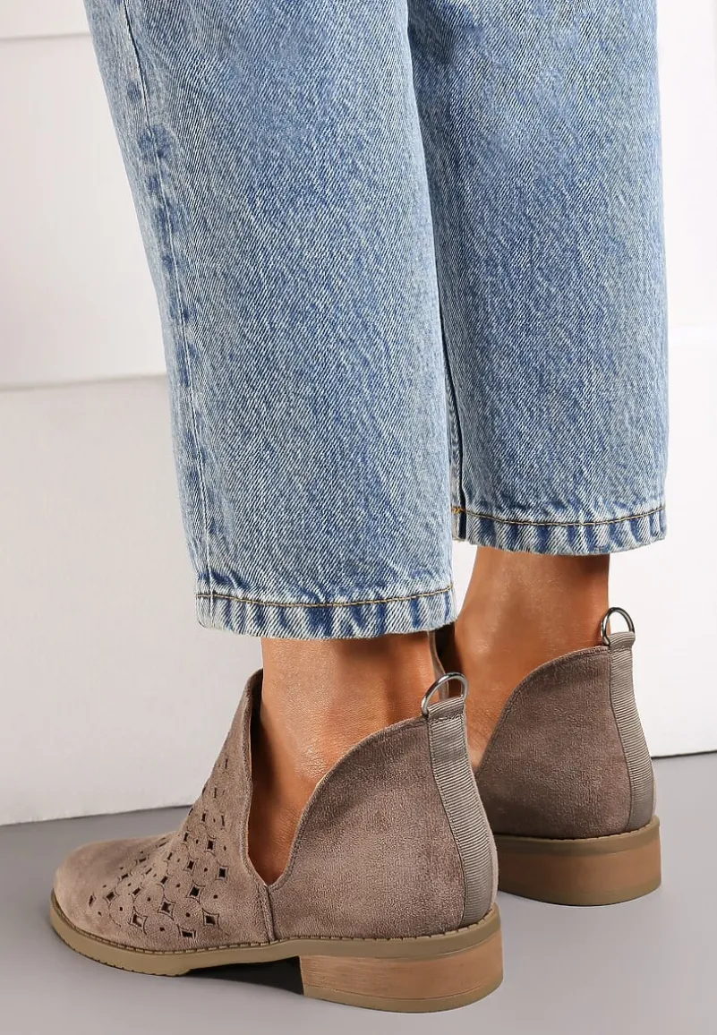 Brązowe Botki Boho z Ozdobną Perforacją i Rozcięciami po Bokach Pelorieta