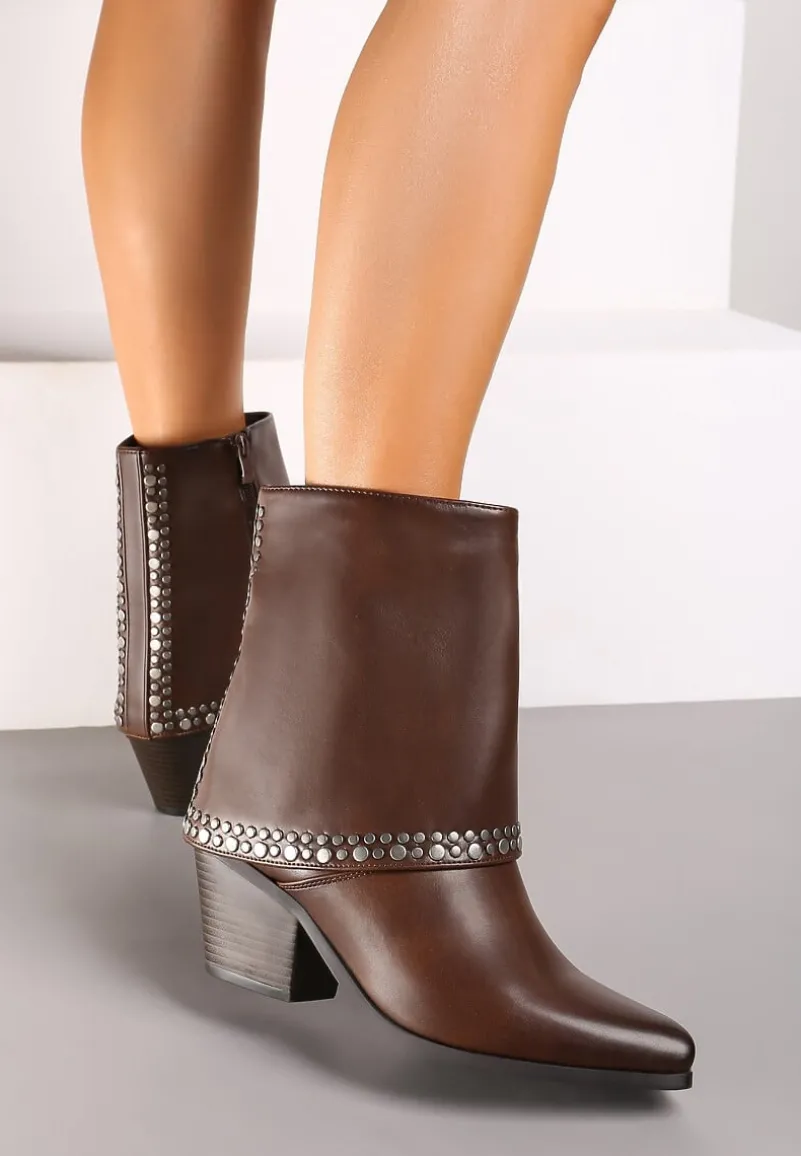 Botki Irissana to prawdziwe must-have na nadchodzące sezonowe przełomie, które dodadzą Twojemu lookowi rockowego charakteru. Stożkowy obcas zapewnia stabilność nawet podczas całodniowego noszenia. Zaakcentowany nosek oraz błyskotliwe zdobienia nitami pięknie ożywiają klasyczny design i sprawiają, że te botki świetnie wyglądają zarówno w codziennym zestawie z jeansami i skórzaną kurtką, jak i jako uzupełnienie bardziej eleganckiego stroju. Irissana może stać się Twoim niezawodnym kompanem na wiele okazji.