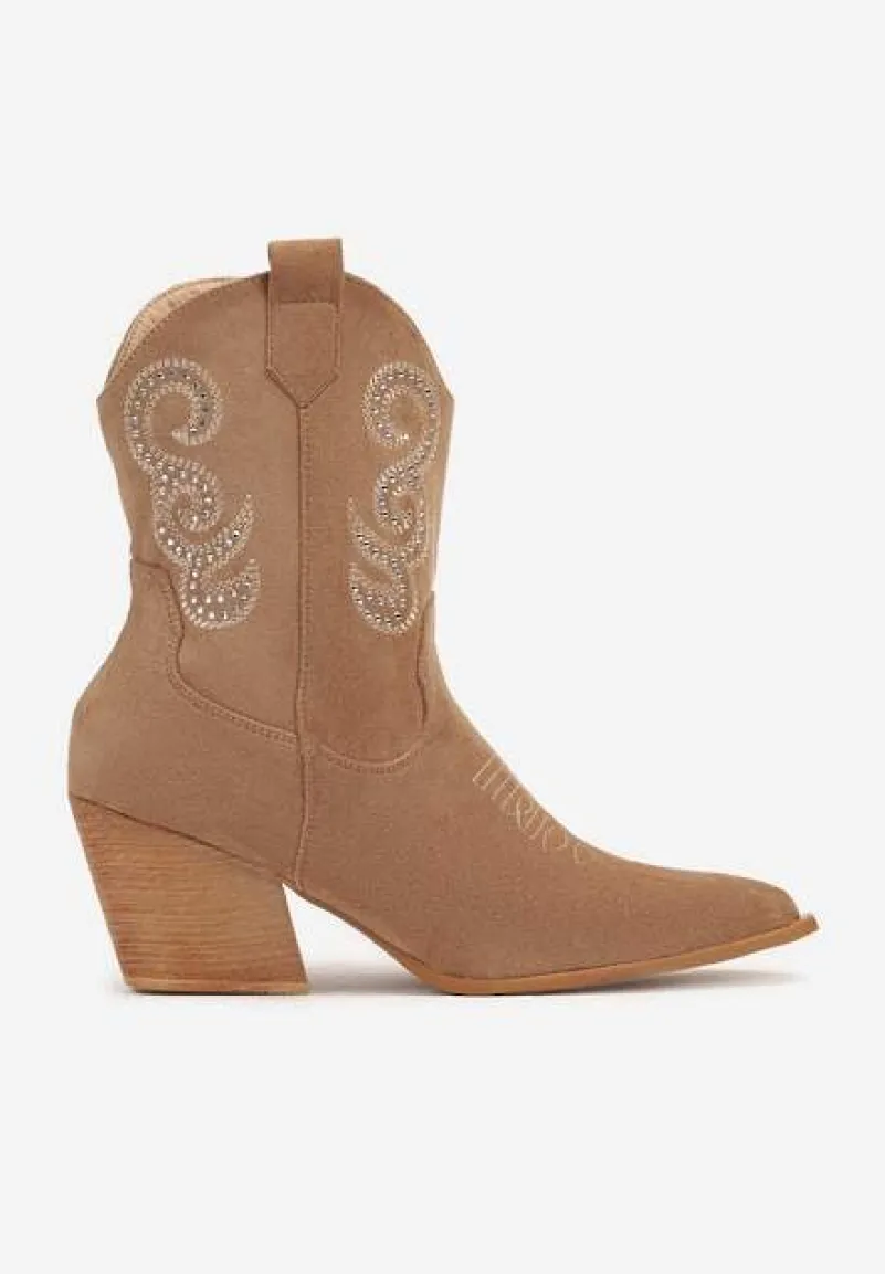 Podkręć swój dziki zachód w miejskim wydaniu z botkami Ansitha! Wykonane z dbałością o każdy detal obuwie, z kobiecym stożkowym obcasem dodaje pewności kroku i wydłuża nogi. Stylowe cyrkonie rozbłyskują na tkaninie, przyciągając spojrzenia i nadając unikalnego charakteru. Praktyczne zapięcie na suwak gwarantuje łatwe dopasowanie. Nadają się do noszenia na co dzień z boho sukienką i jeansową kurtką, jak również do kreacji wieczorowych, gdzie połączone z czarnymi rurkami i koszulą w zwierzęcy wzór sprawią, że będziesz niekwestionowaną gwiazdą każdego wydarzenia.