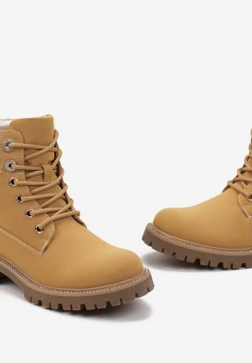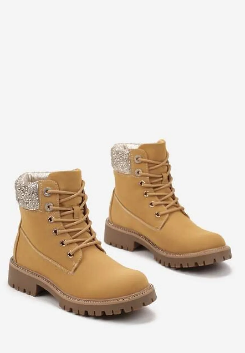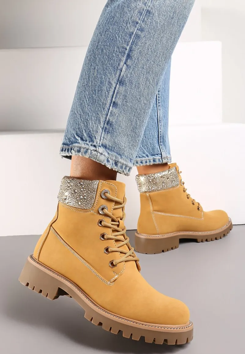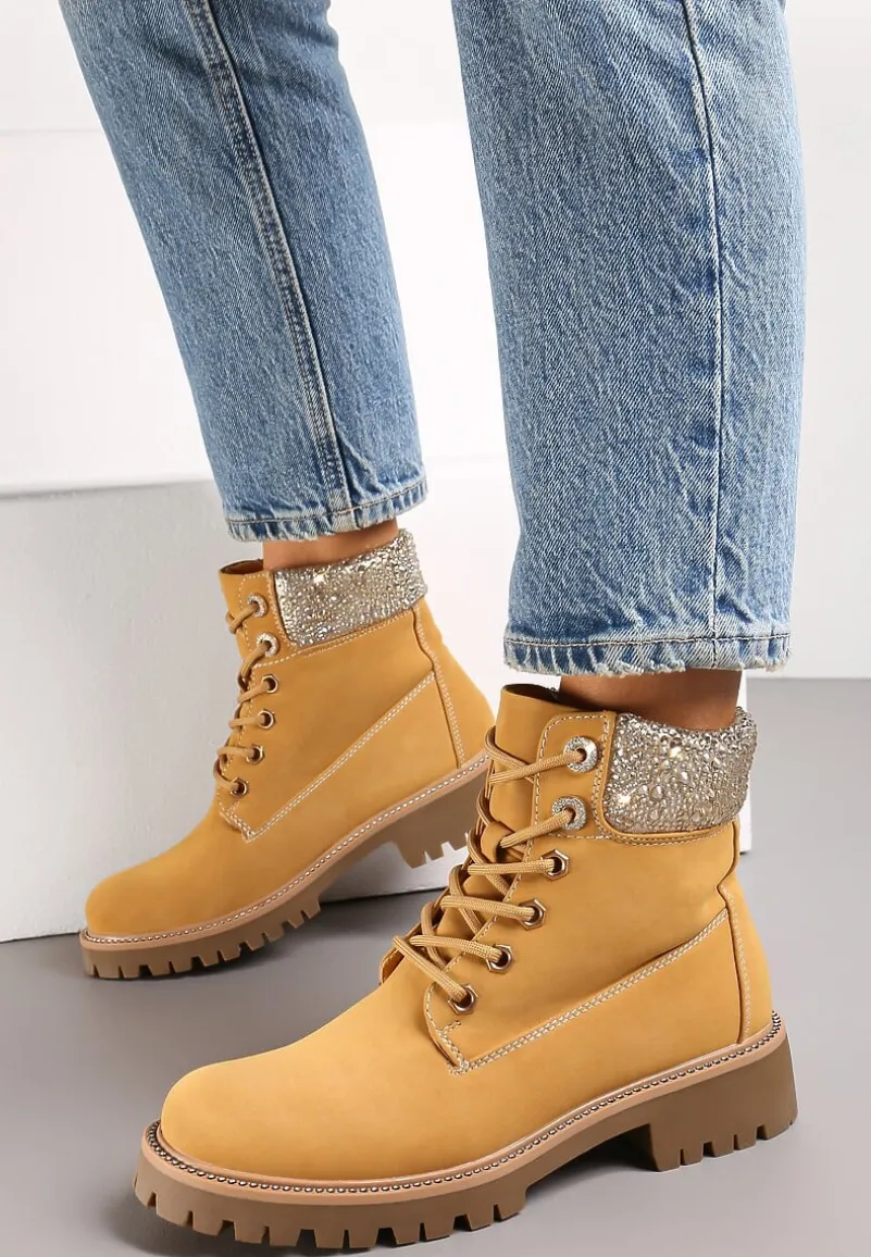 Sznurowane botki Flurella za kostkę. W środku lekko ocieplone kocem obuwniczym. Przy kostce zdobione cyrkoniami.